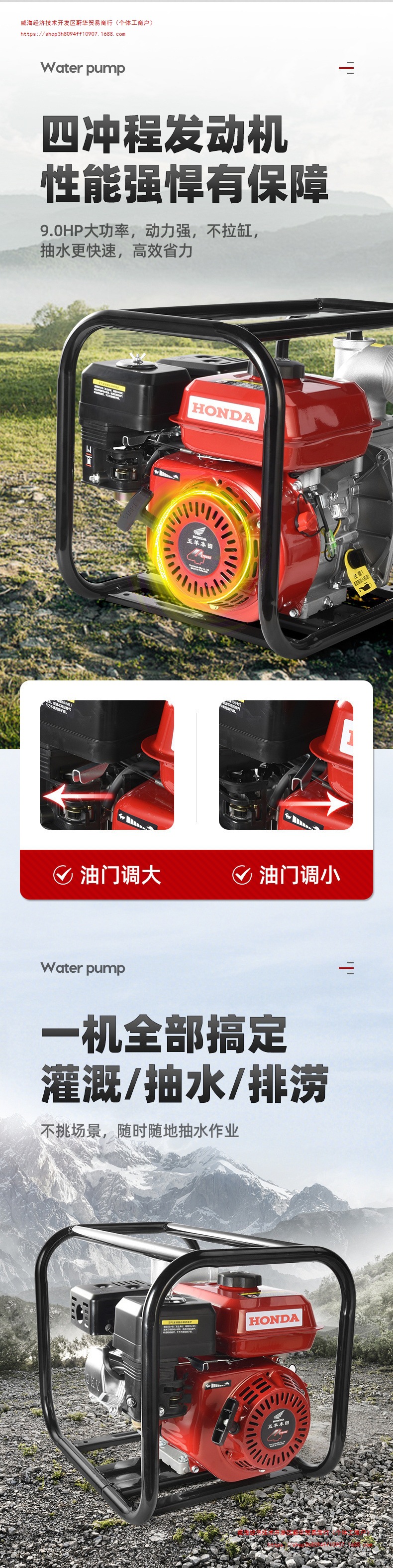 우양 혼다 가솔린 엔진 워터 펌프 농업 4 행정 하이 리프트 대형 유수 펌프 자체 프라이밍 워터 펌프 관개스토어 가기
