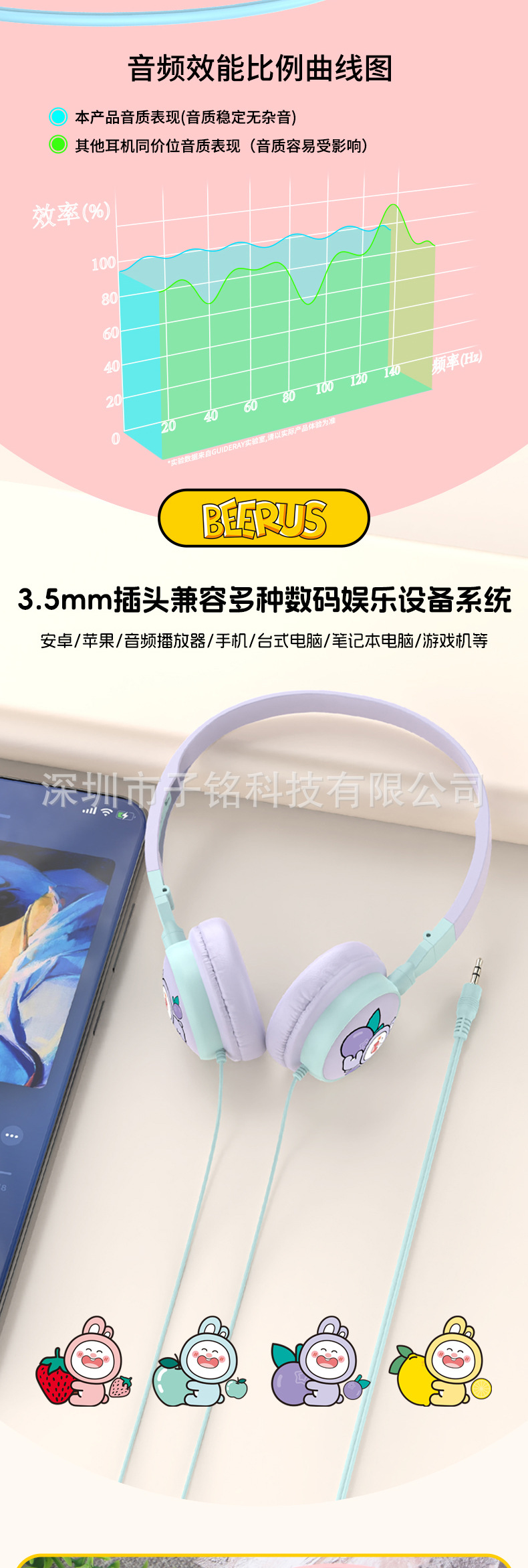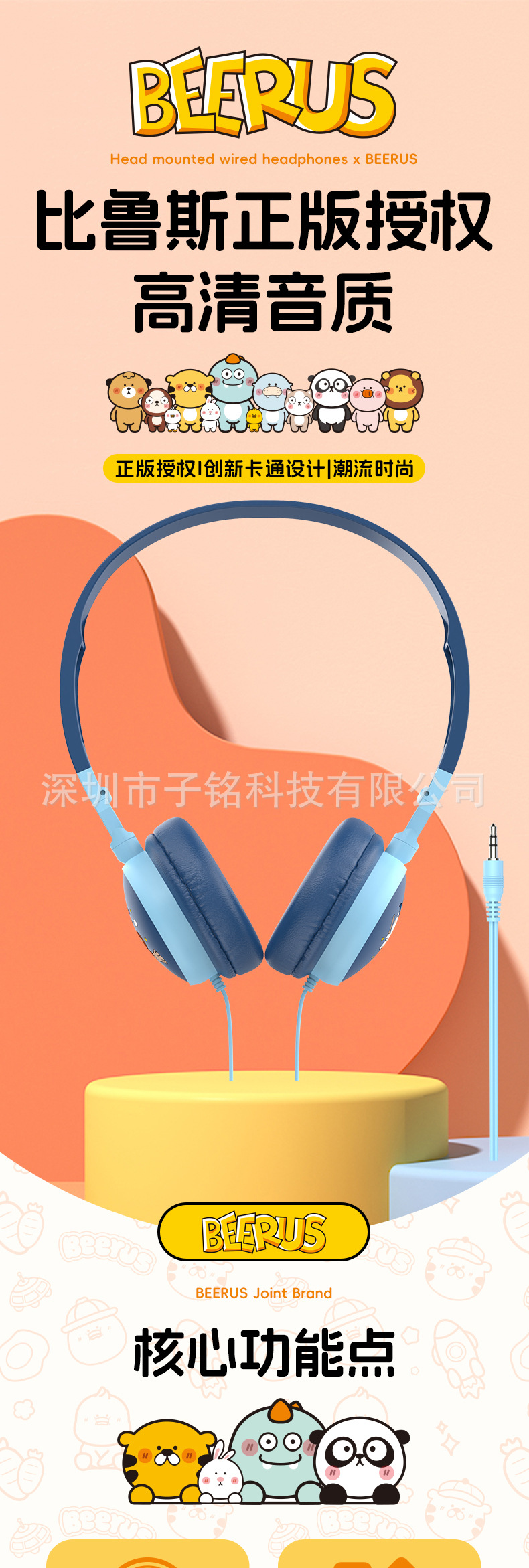 헤드셋 유선 헤드셋 서브 우퍼 접이식 휴대 전화 노트북 케이블 어린이 만화 헤드셋스토어 가기