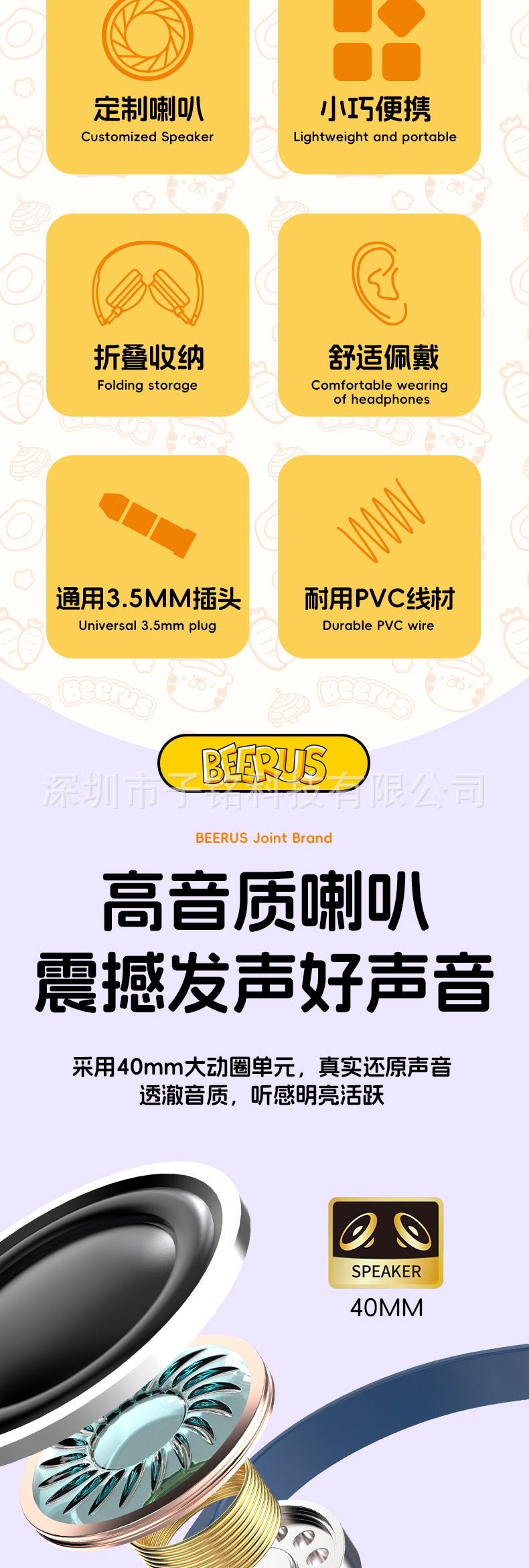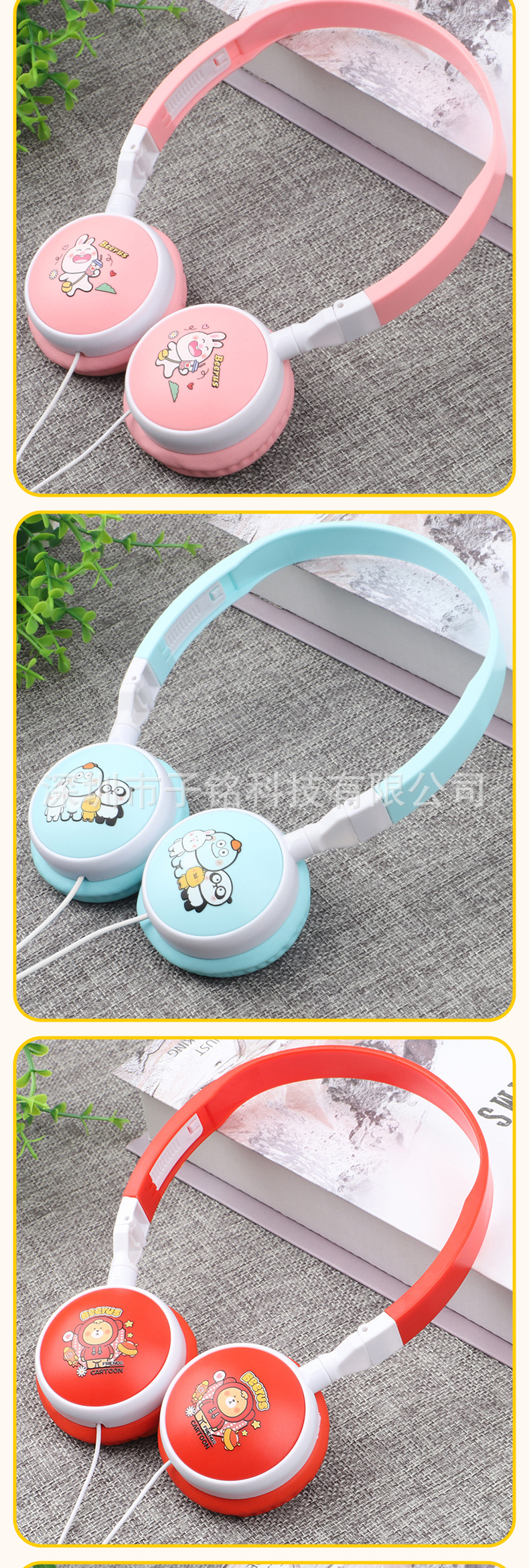 헤드셋 유선 헤드셋 서브 우퍼 접이식 휴대 전화 노트북 케이블 어린이 만화 헤드셋