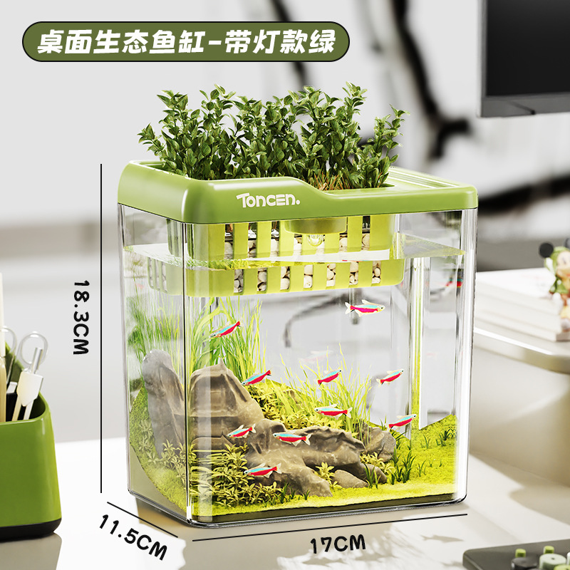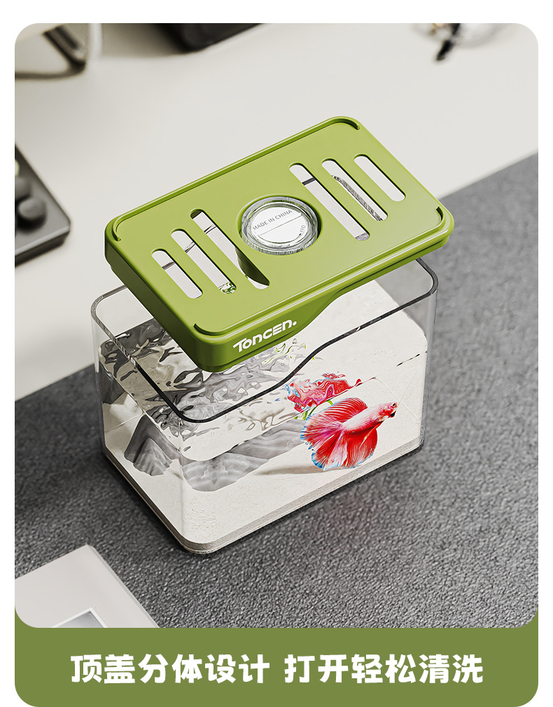 가볍고 뚜껑이 떨어지는 플라스틱 금붕어 탱크 거실 데스크탑 홈 오피스 모조 유리 생선 탱크로 투명한 미니 어항