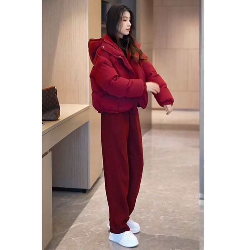 [점포 판매] 2025 리틀 설날 가운 패션 레드 후드 따뜻한 면 패딩 재킷 바지