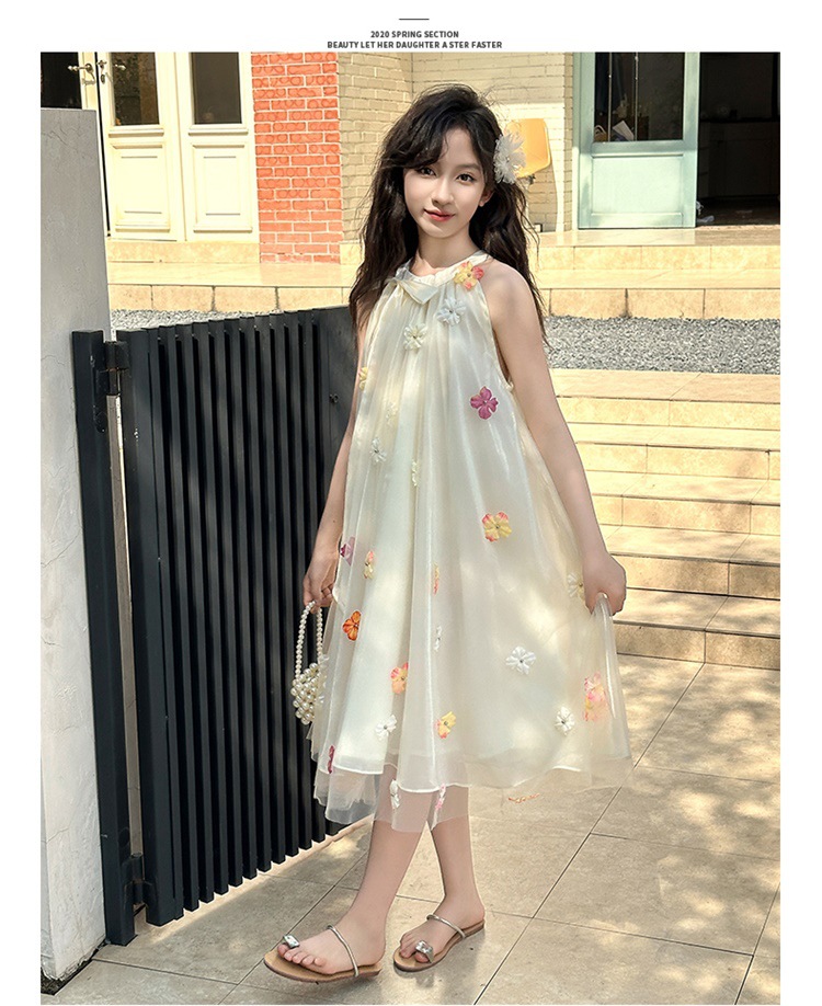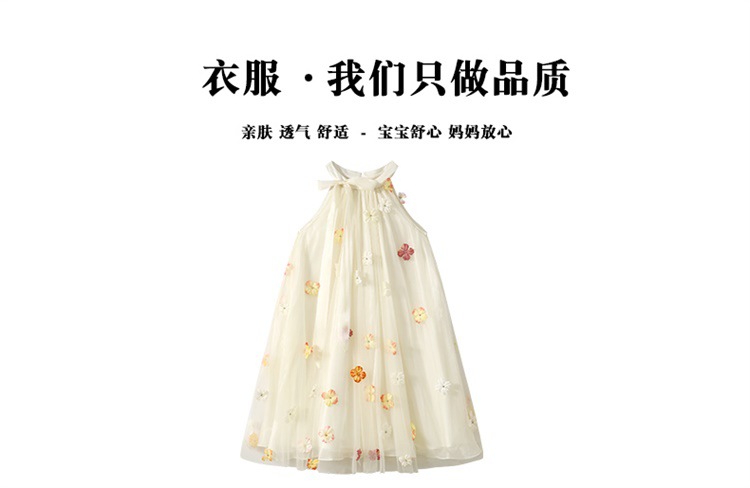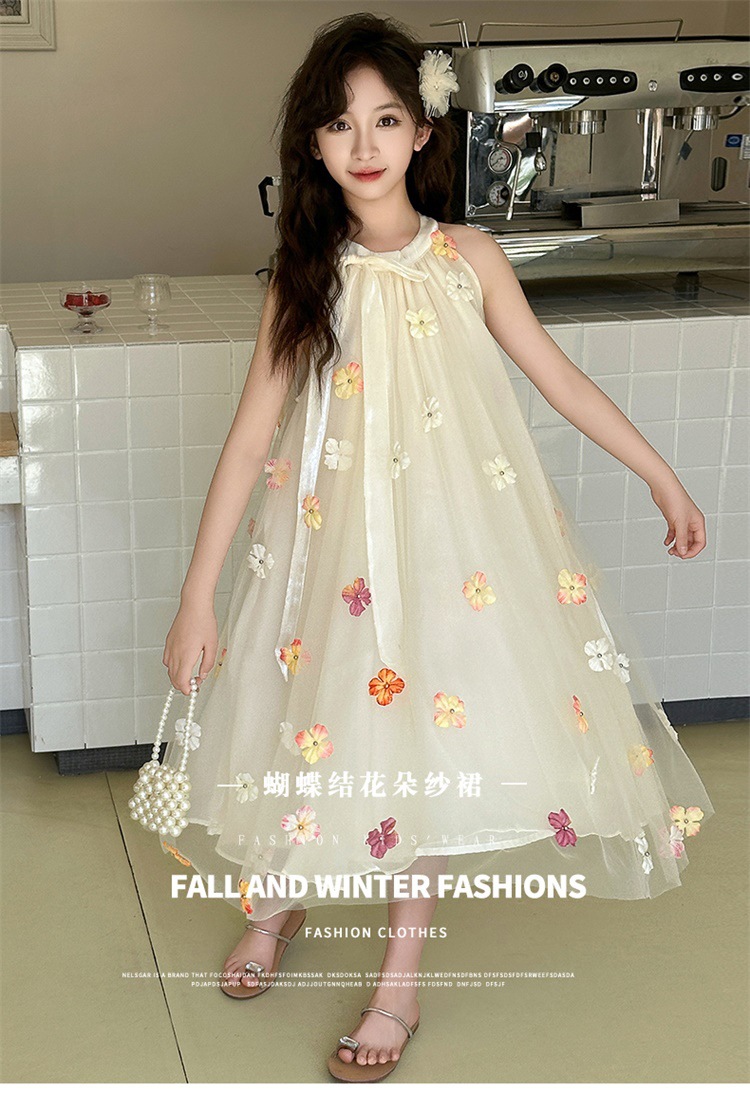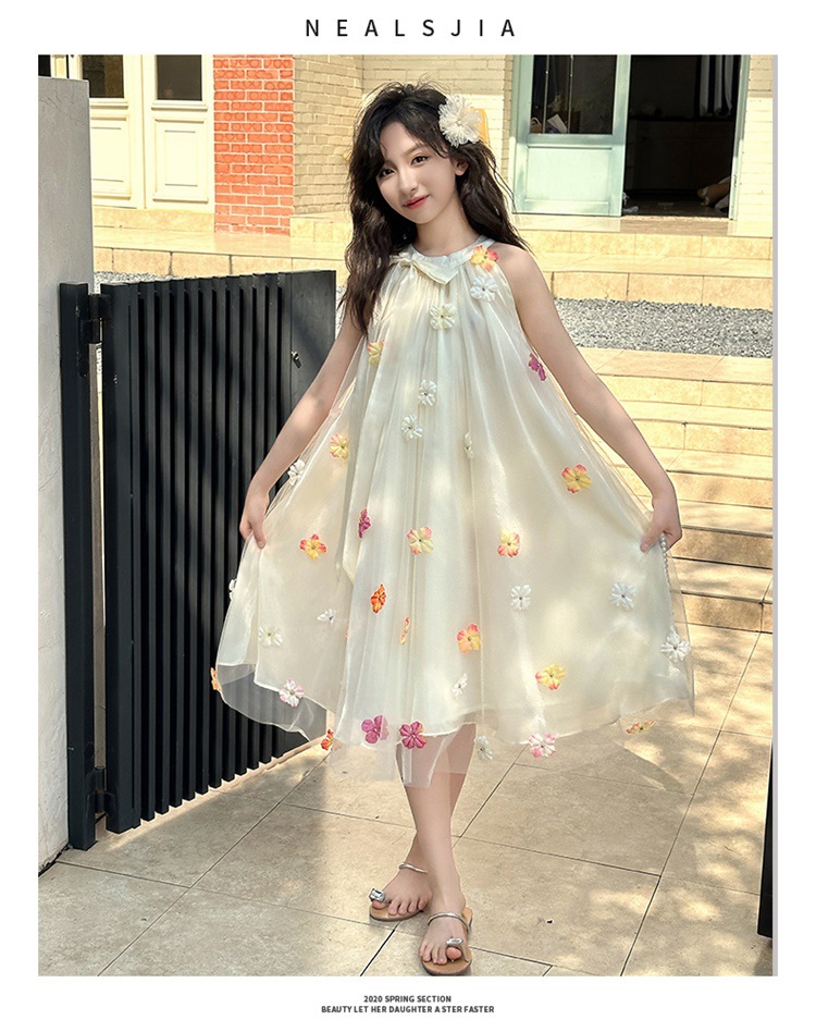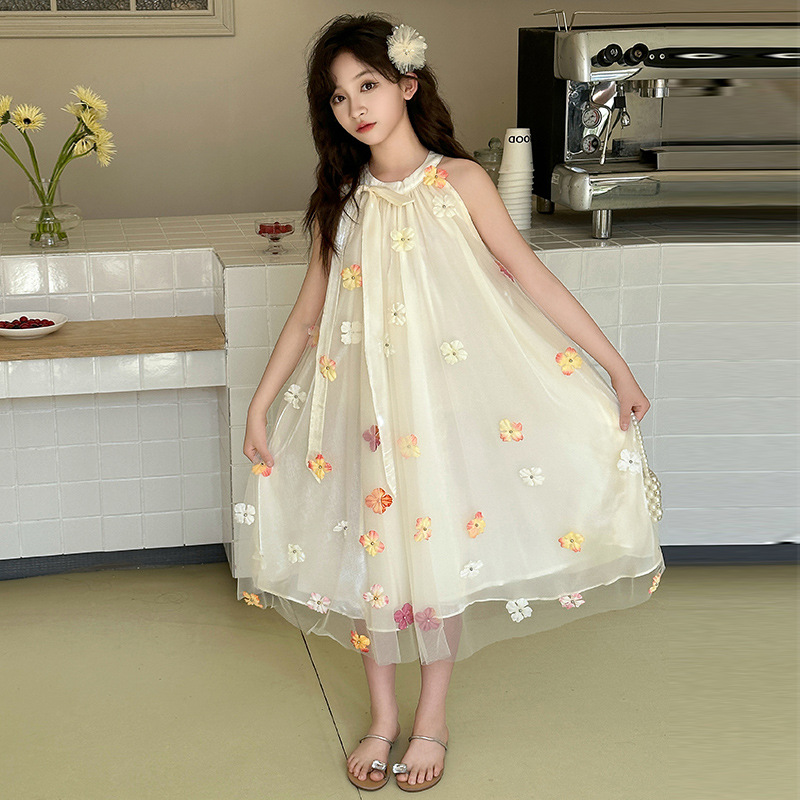 여자 여름 원피스 2025 새로운 소녀 스타일리제 꽃 꽃잎 베일 스커트 여름 민소매 달콤한 비치 스커트스토어 가기