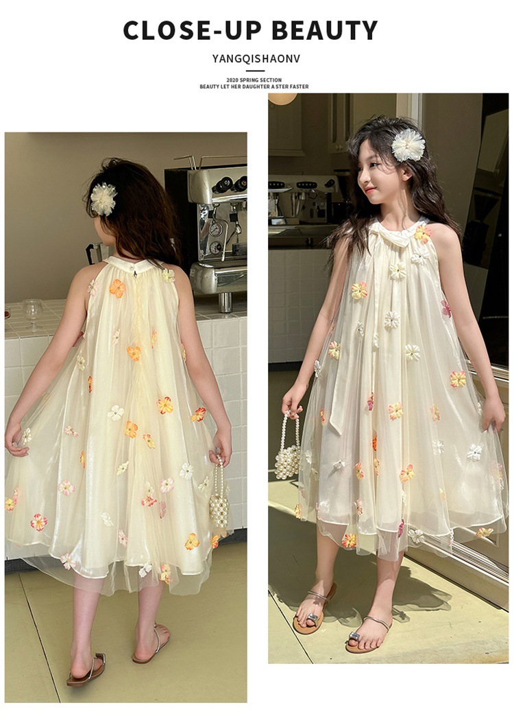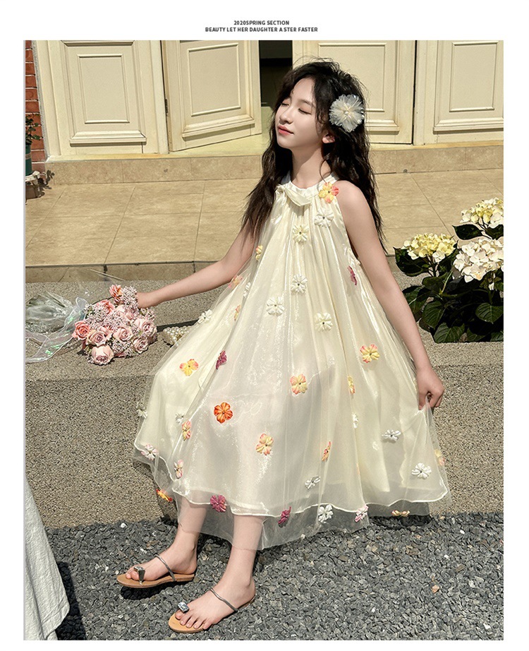 여자 여름 원피스 2025 새로운 소녀 스타일리제 꽃 꽃잎 베일 스커트 여름 민소매 달콤한 비치 스커트