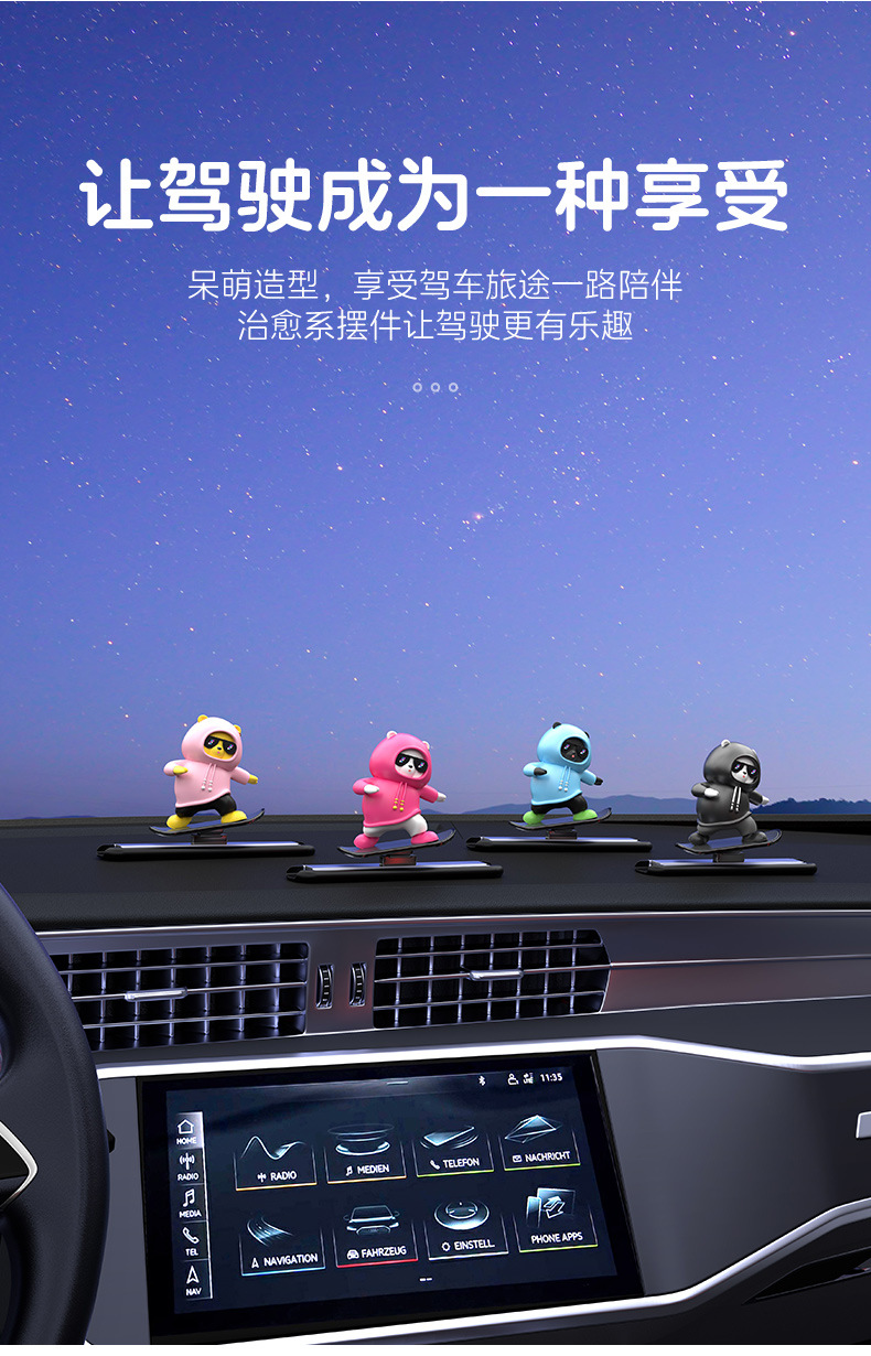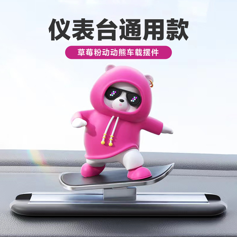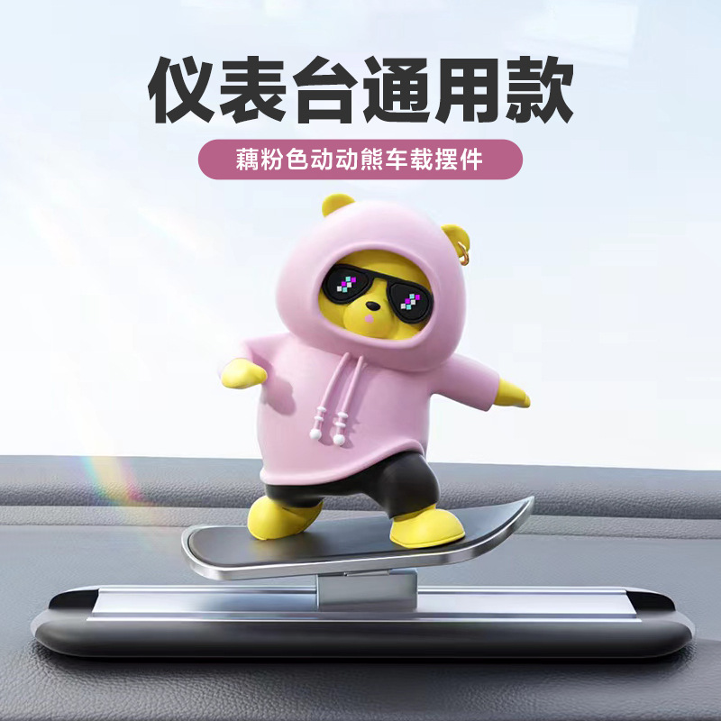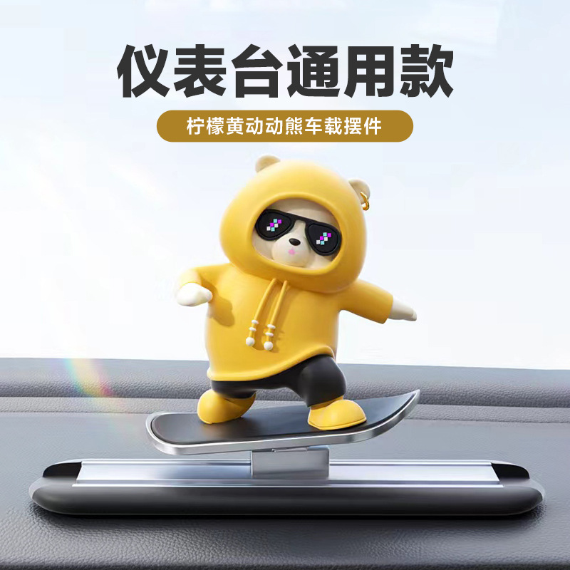 자동차 만화 곰 인형, 공중에 떠 있는 스크린 센터 콘솔, 움직이는 곰 스케이트보드 자동차 장식품, 창의적인 자동차 장식스토어 가기