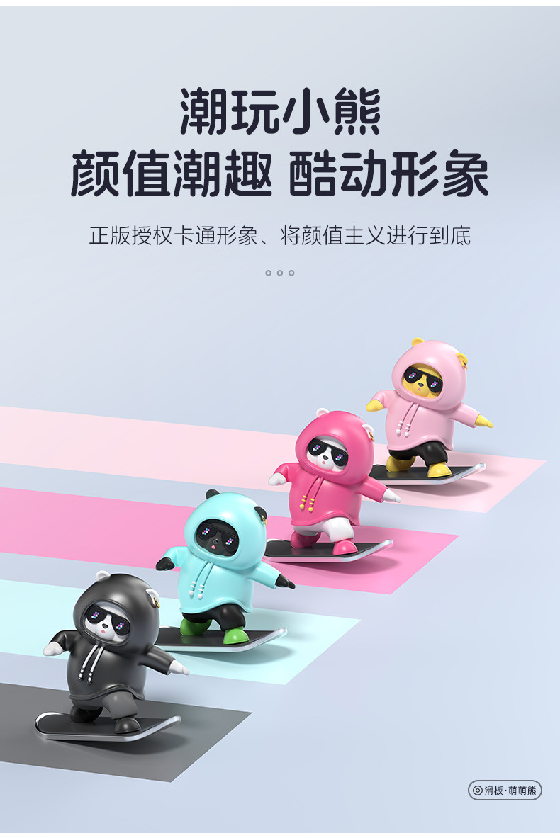 자동차 만화 곰 인형, 공중에 떠 있는 스크린 센터 콘솔, 움직이는 곰 스케이트보드 자동차 장식품, 창의적인 자동차 장식