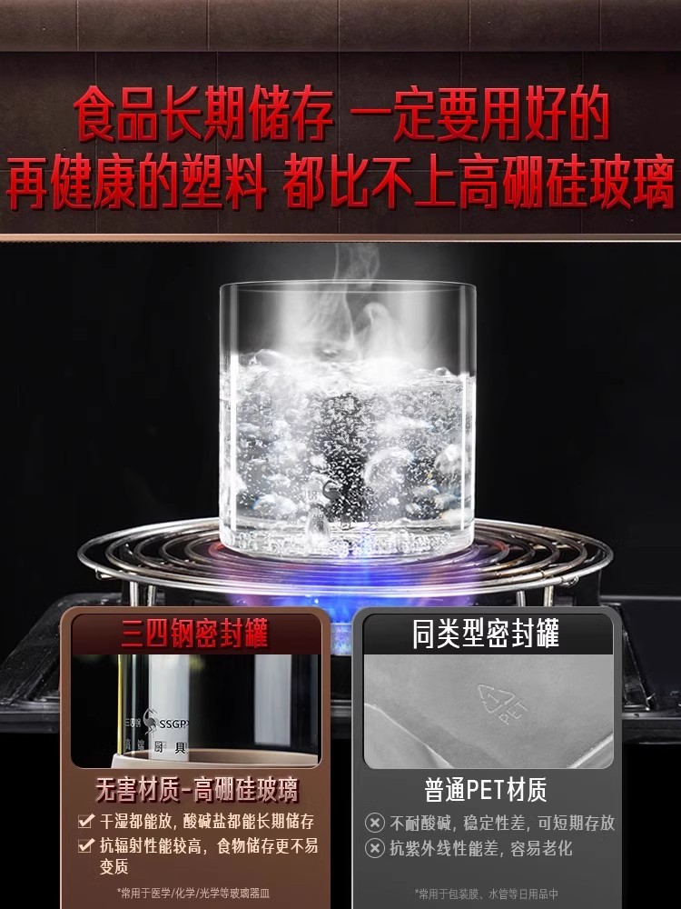 3 개의 4 개의 강철 높은 붕규산 유리 밀봉 된 항아리 진공 차 항아리 가정용 식품 등급 커피 콩 차 저장 빈 상자