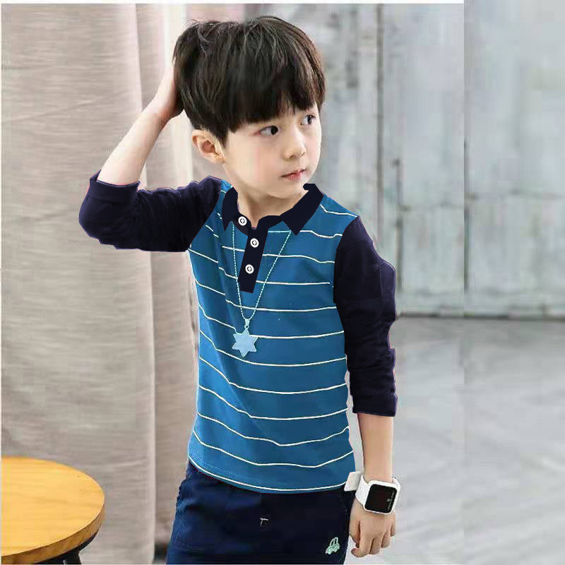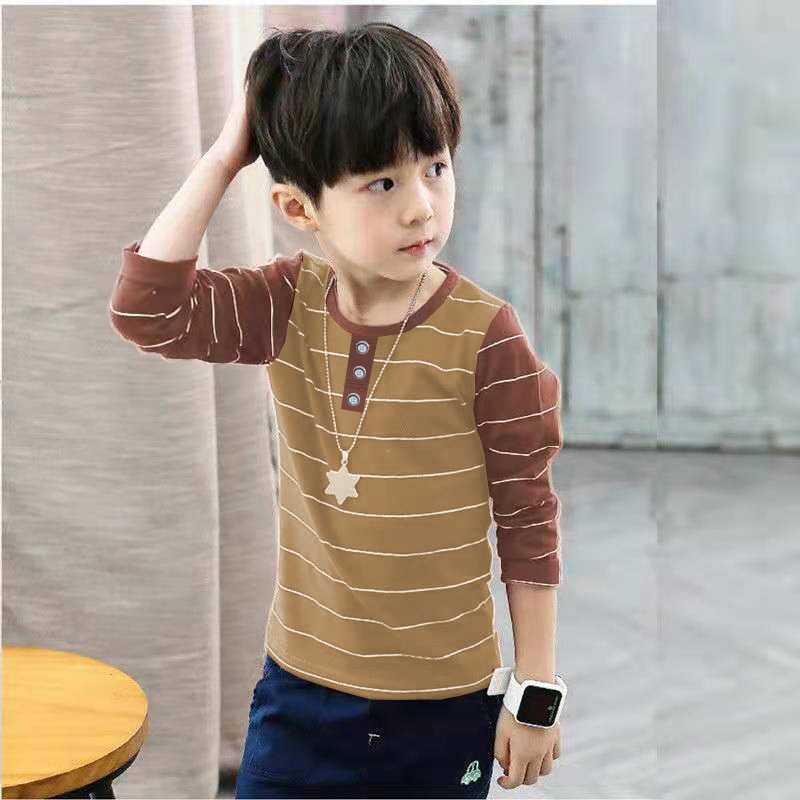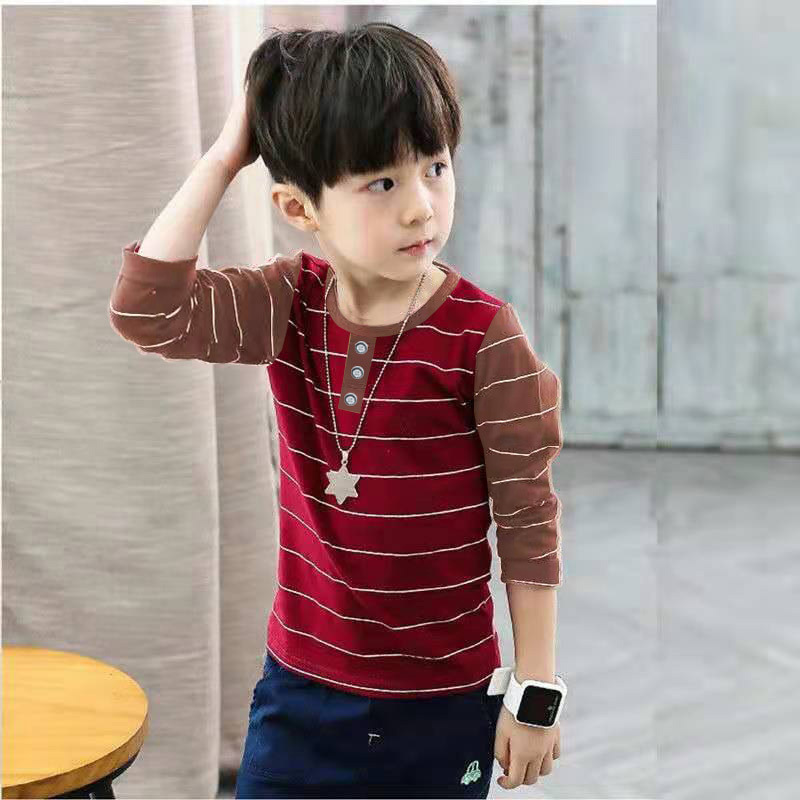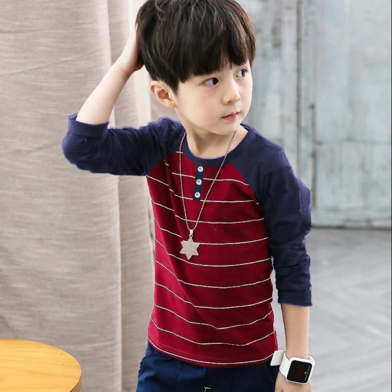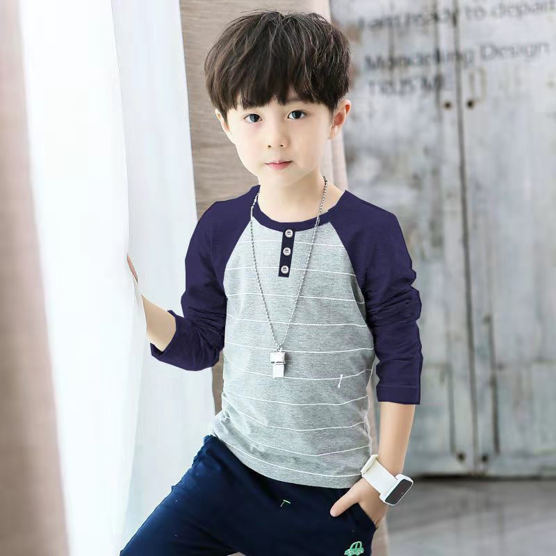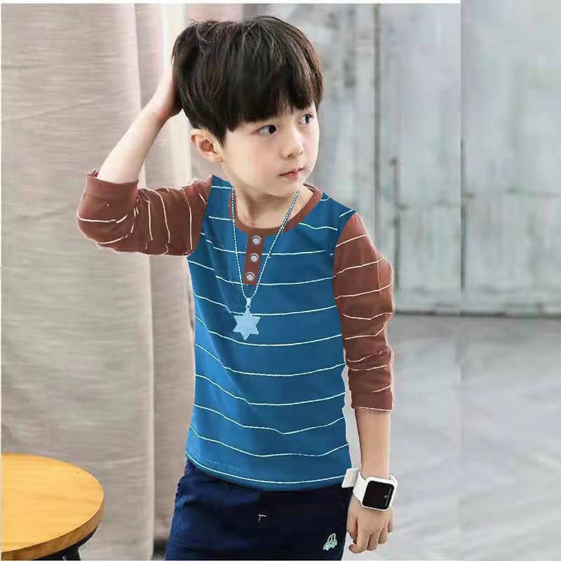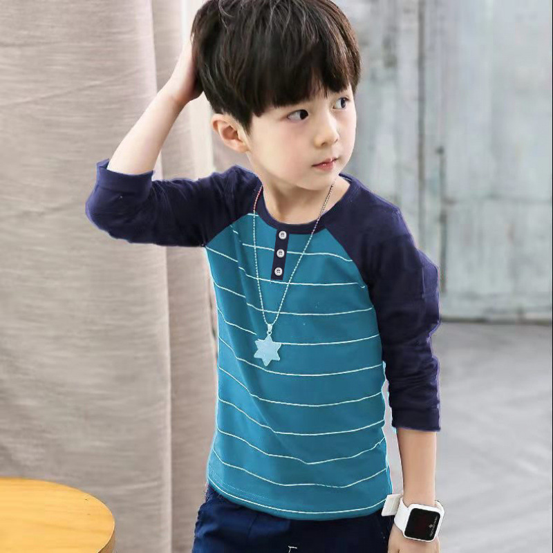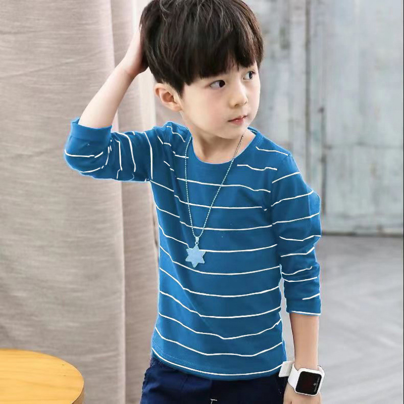 [19000 환매] 면 아동복 소년 긴소매 티셔츠 봄 · 가을 새 중 · 대형 어린이 줄무늬 얇은 둥근 목