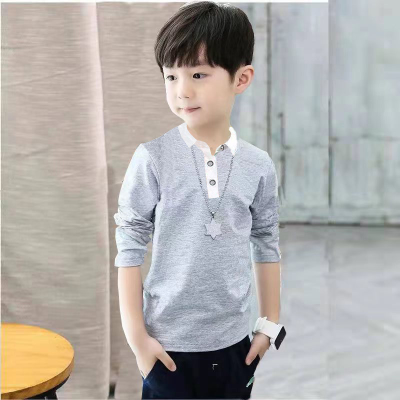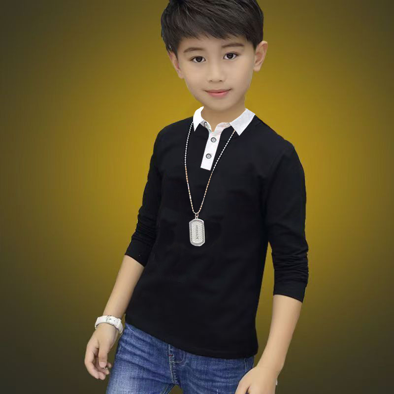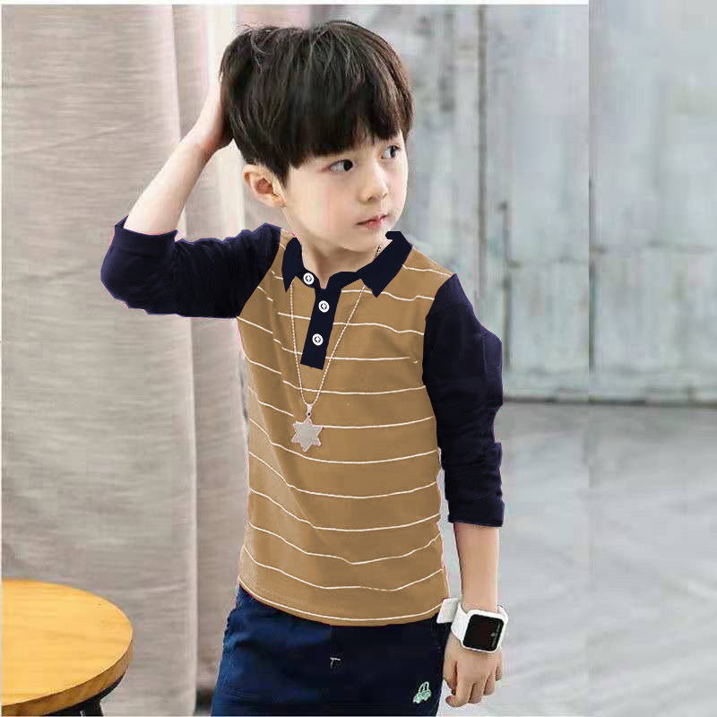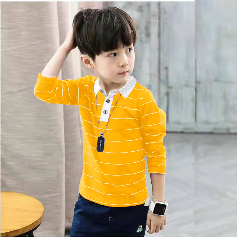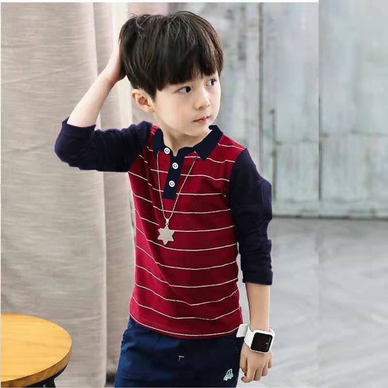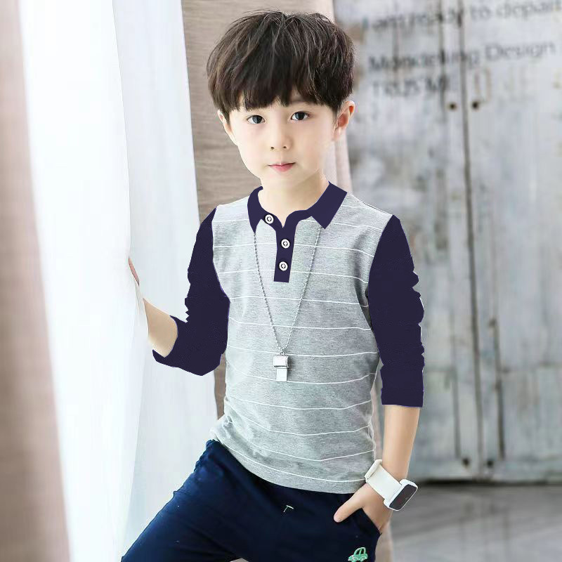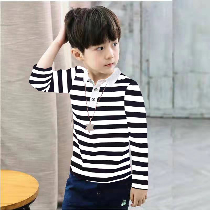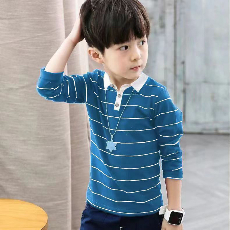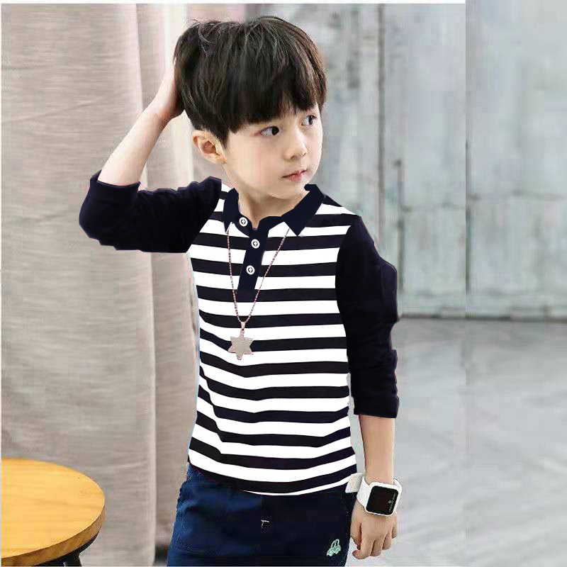 [19000 환매] 면 아동복 소년 긴소매 티셔츠 봄 · 가을 새 중 · 대형 어린이 줄무늬 얇은 둥근 목
