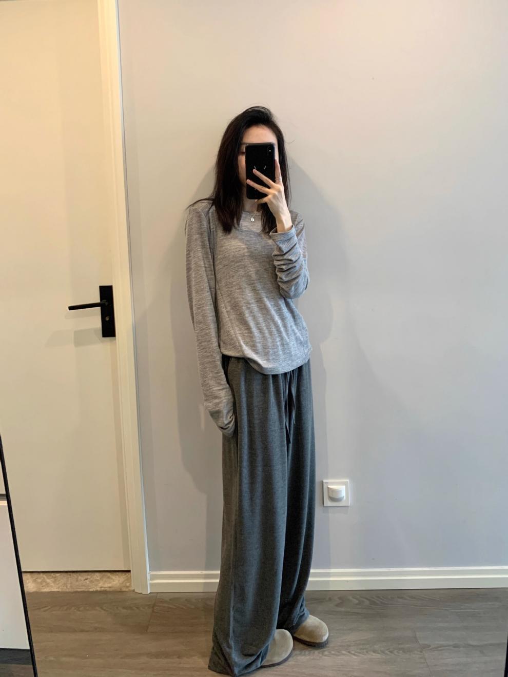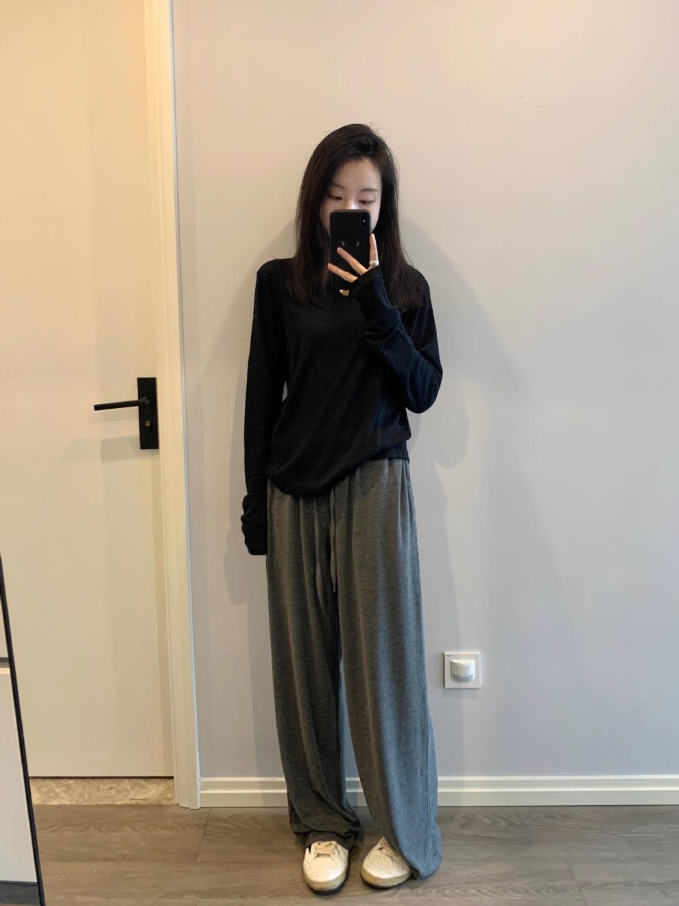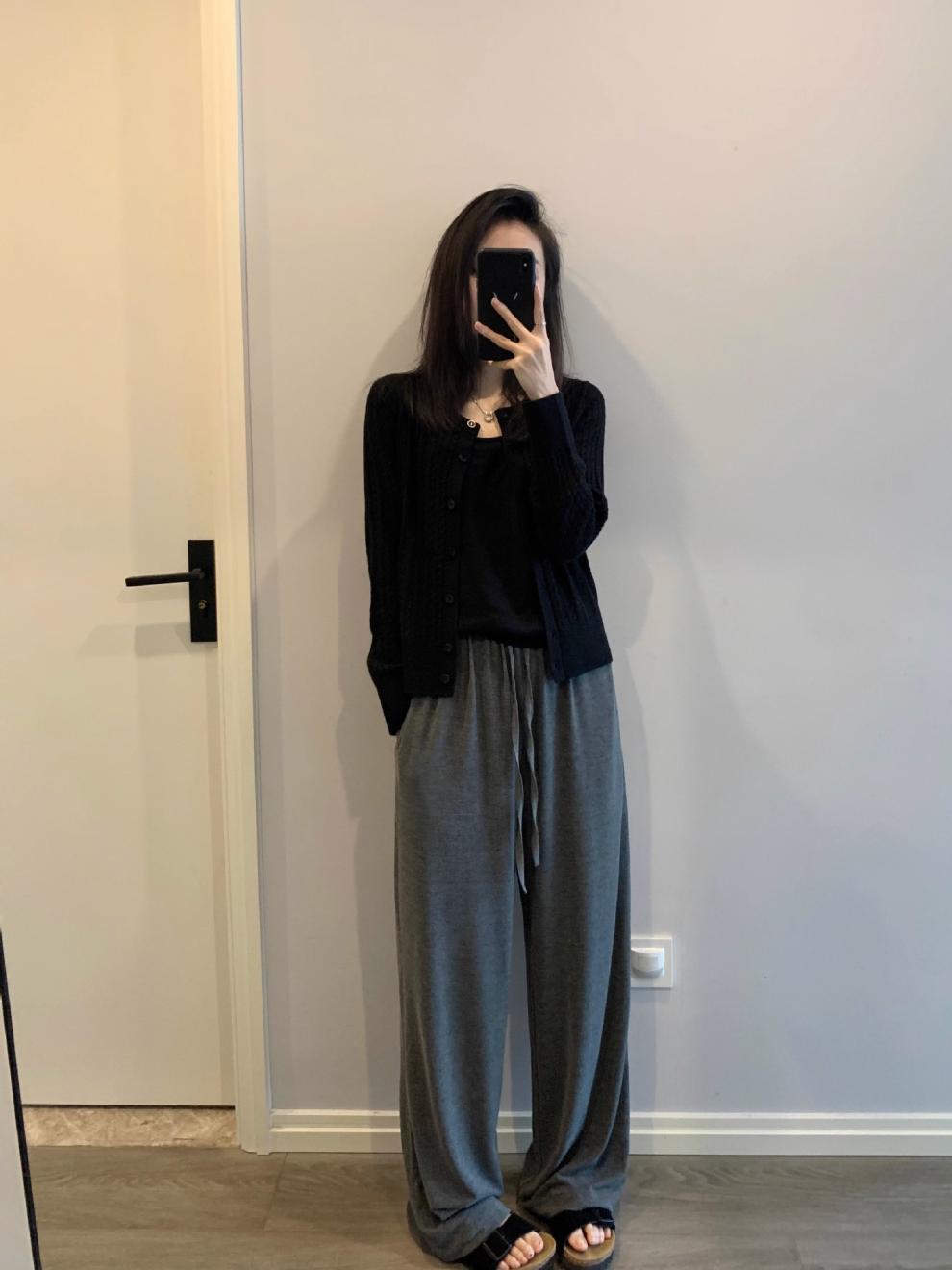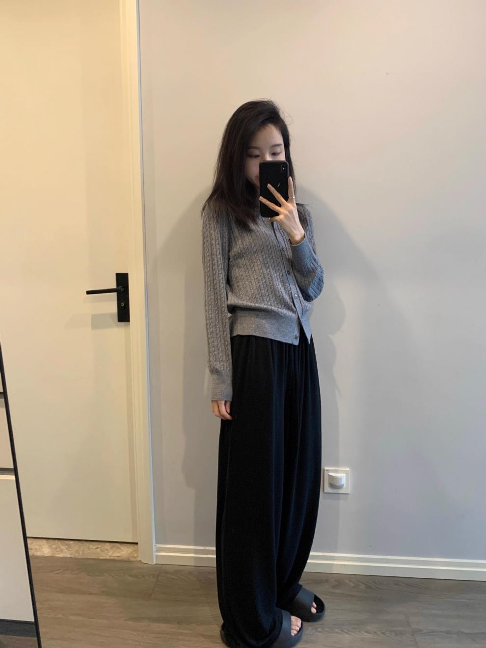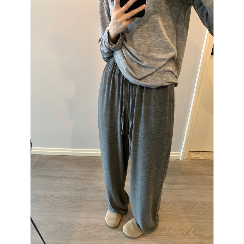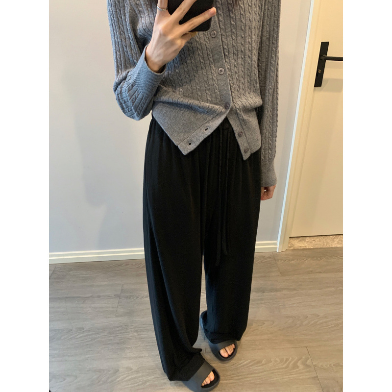 150 작은 게으른 회색 찹쌀 바지 여성용 봄과 가을 높은 허리 딥 스트레이트 느슨한 좁은 캐주얼 와이드 레그 바지스토어 가기