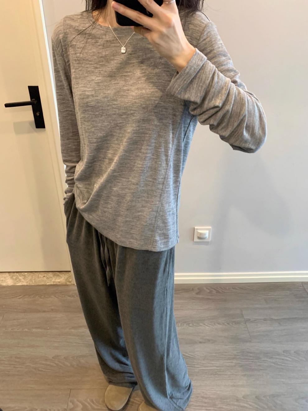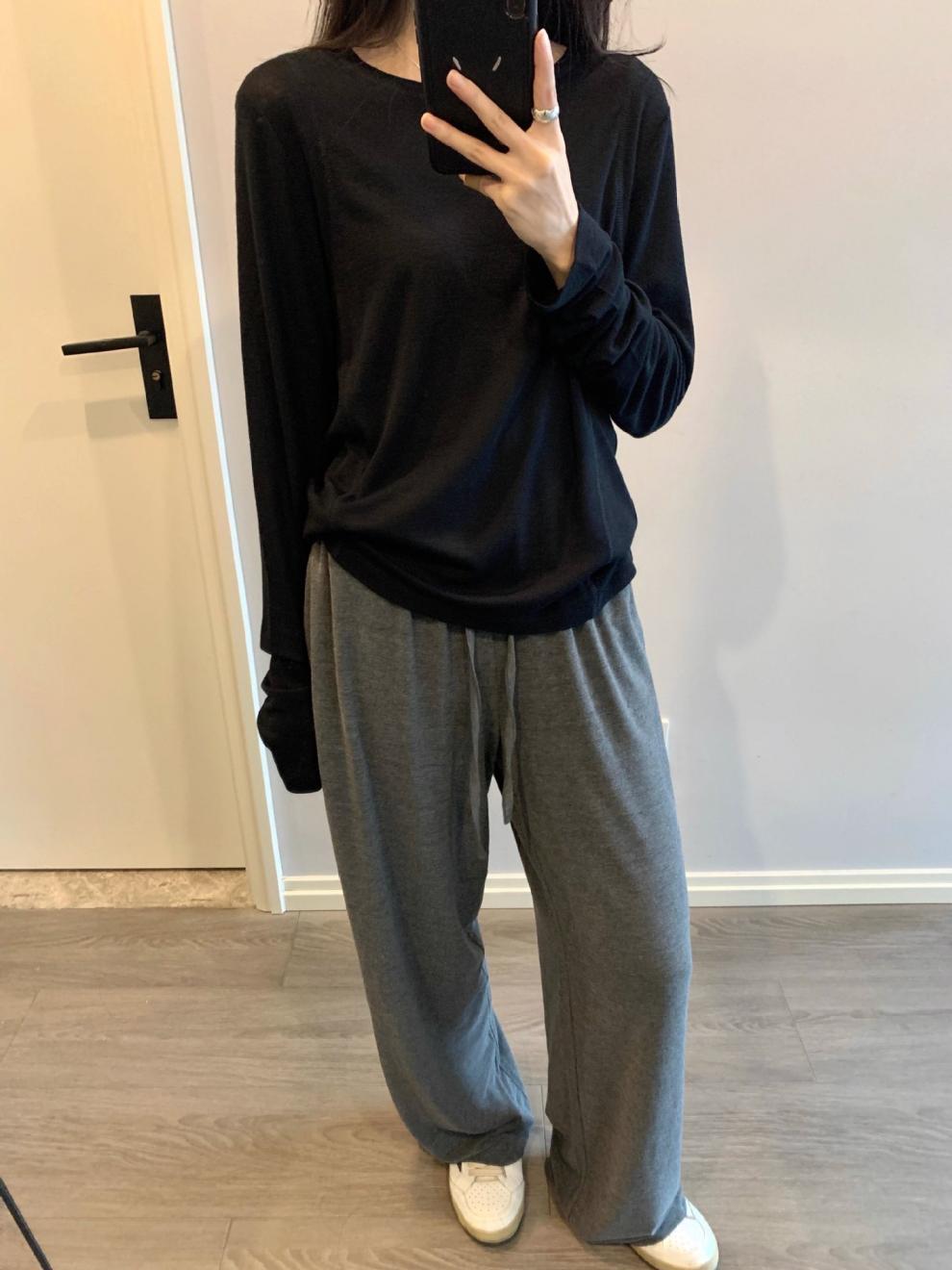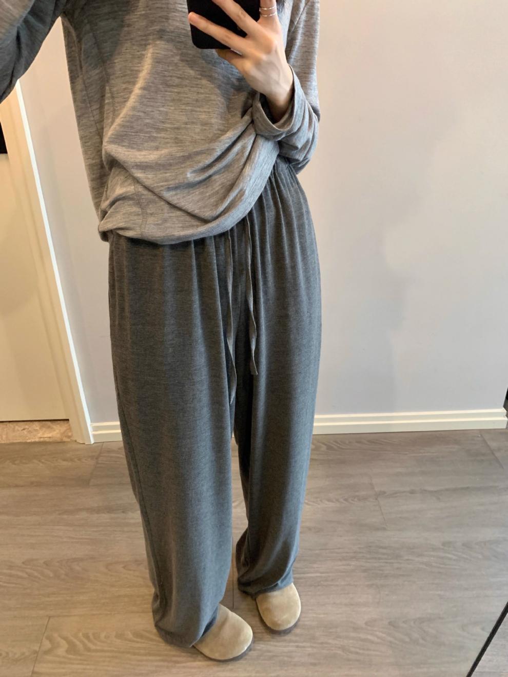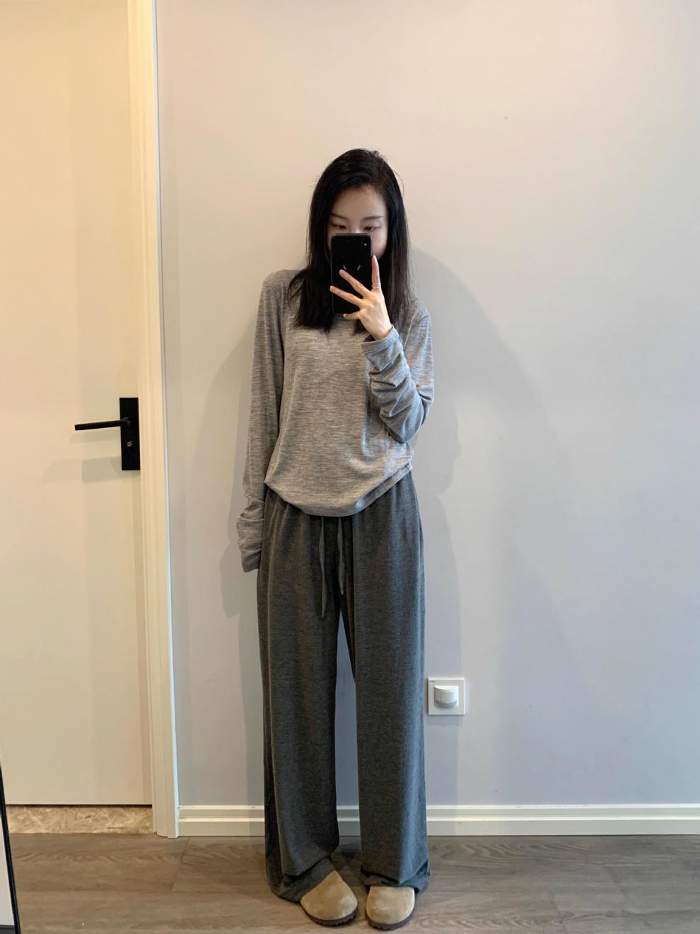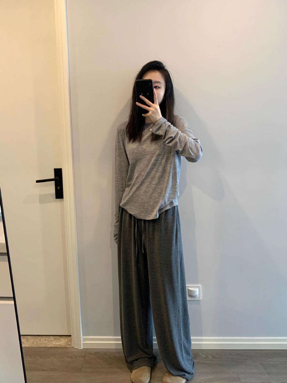 150 작은 게으른 회색 찹쌀 바지 여성용 봄과 가을 높은 허리 딥 스트레이트 느슨한 좁은 캐주얼 와이드 레그 바지스토어 가기