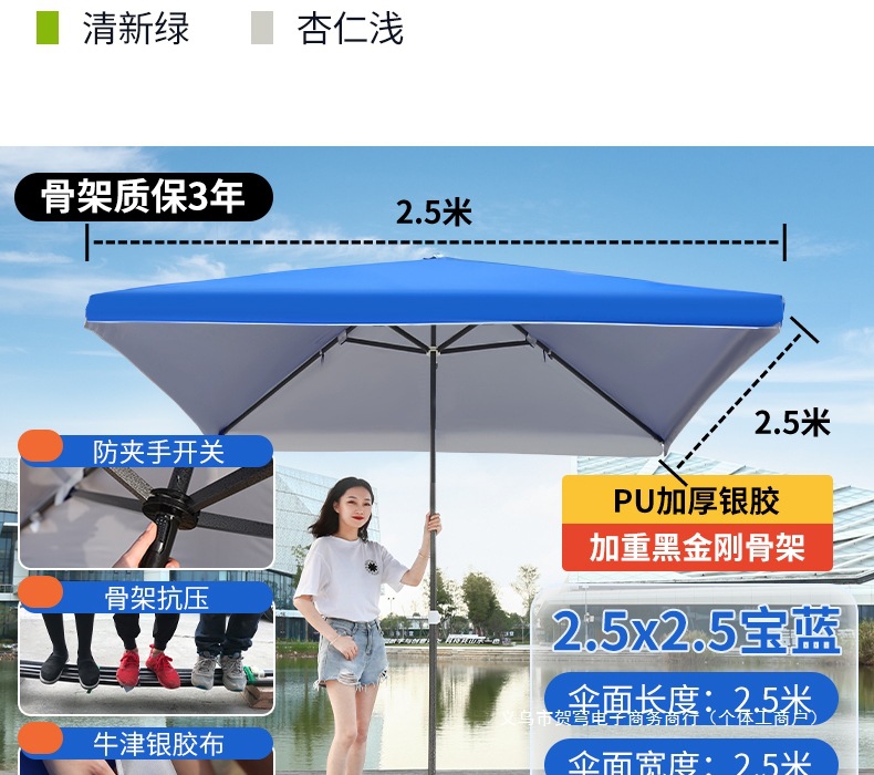• 사파이어 블루 2.5*2.5 두꺼운 은색 접착제 + 두꺼운 우산 기둥(30L 베이스 포함)