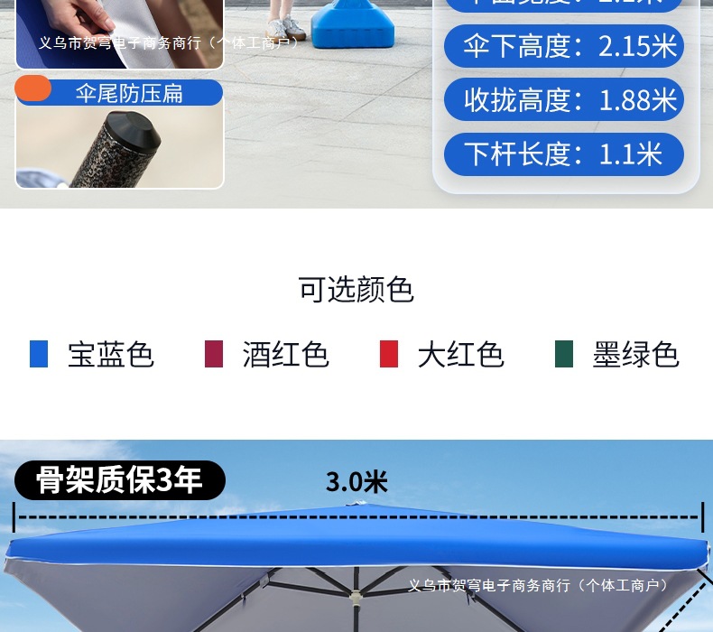 • 부르고뉴 3.0*3.0 두꺼운 은색 접착제 + 두꺼운 우산 기둥(30L 베이스 포함)