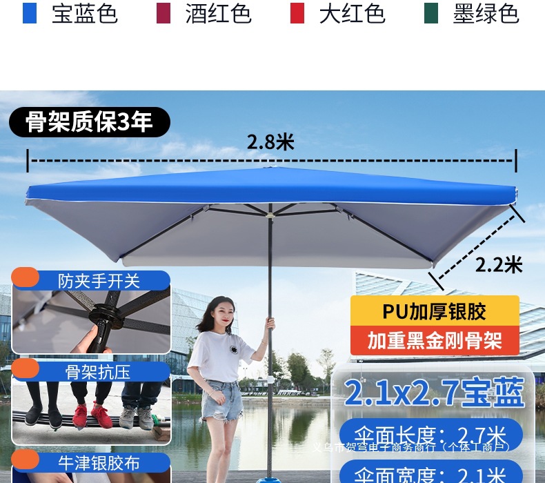 태양 우산 야외 파라솔 대형 우산 상업용 대형 코트야드 우산 대형 스톨 우산 광장 긴 사각형 우산 캐노피