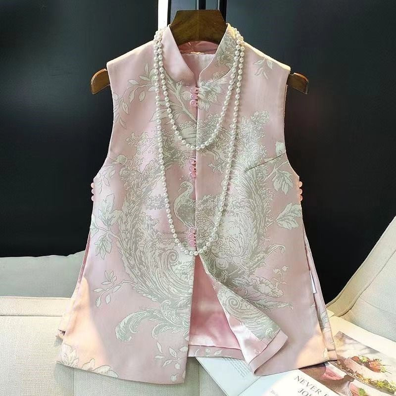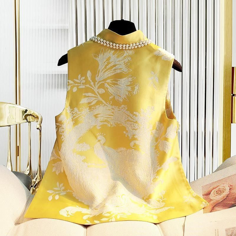 새로운 중국 스타일 국가 스타일 조끼 여성 자카드 조끼 노란색 빈티지 민족 스타일 개선 된 청삼 탑 웨이스트 코트 전국 패션 봄스토어 가기
