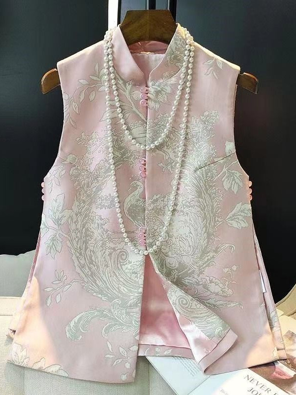 새로운 중국 스타일 국가 스타일 조끼 여성 자카드 조끼 노란색 빈티지 민족 스타일 개선 된 청삼 탑 웨이스트 코트 전국 패션 봄