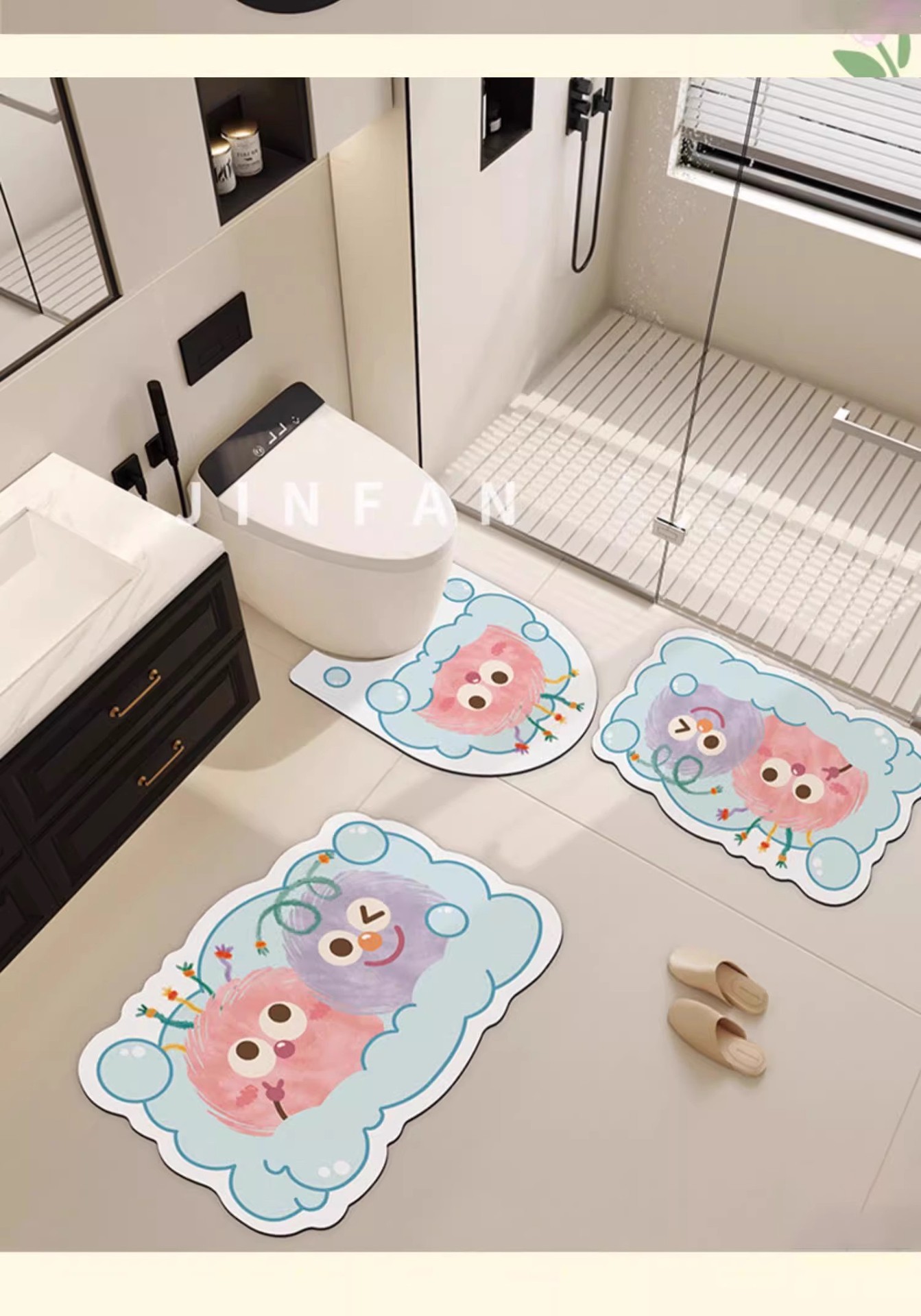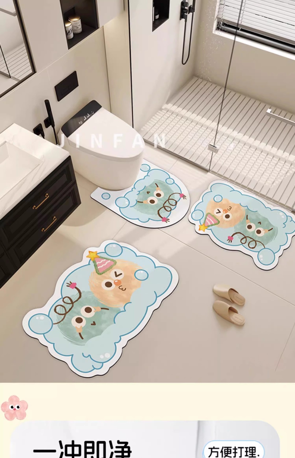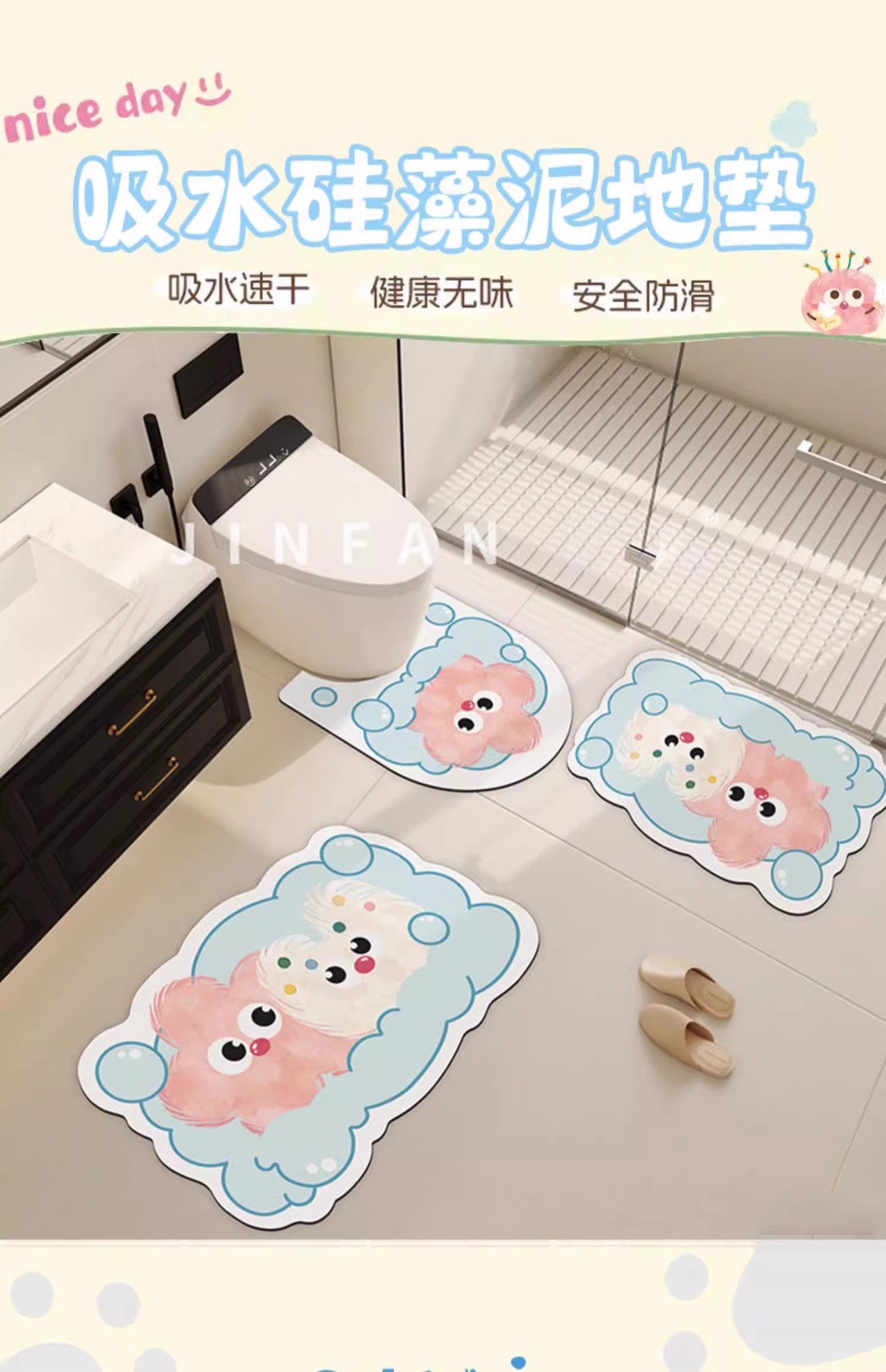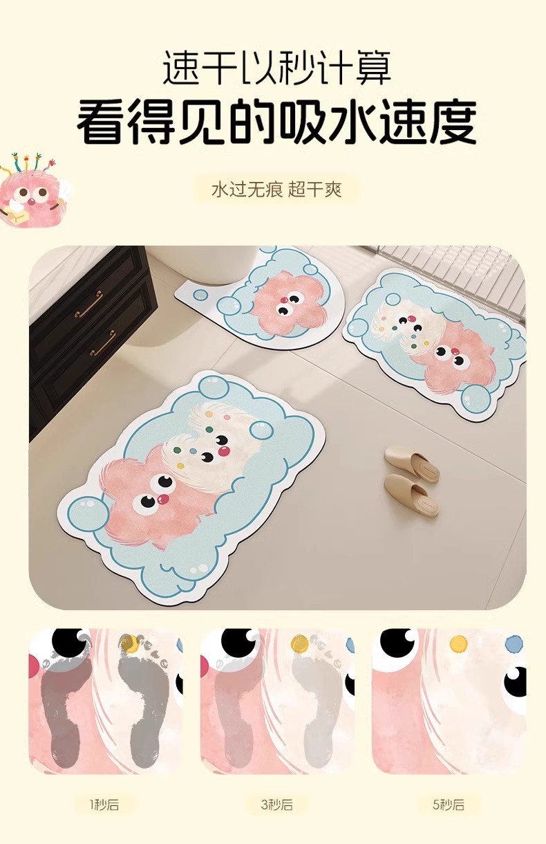 만화 욕실 흡수성 미끄럼 방지 매트 U 자형 화장실 diatom 진흙 발 매트 변기 매트 도매