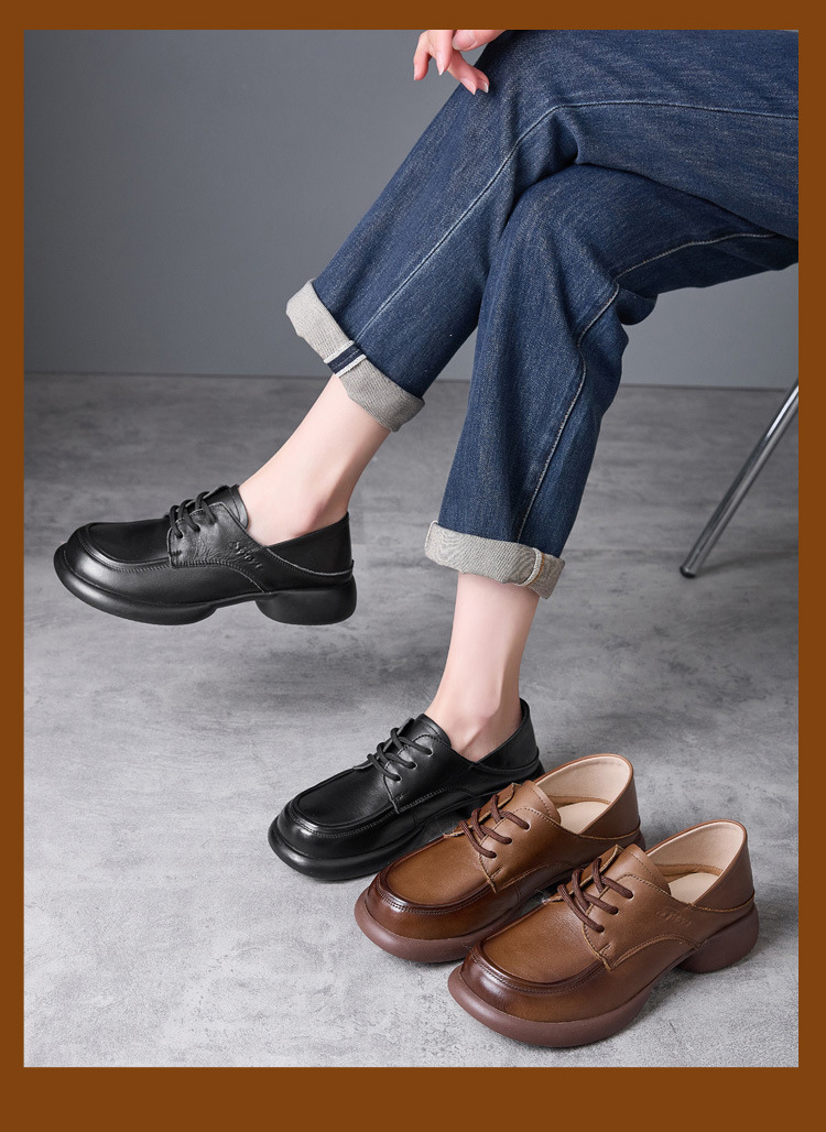 2025 봄 새로운 영국 스타일 작은 가죽 신발 부드러운 하단 레이스업 라운드 헤드 투웨어 올 매치 여성 신발 정품 가죽 여성용 어머니 신발