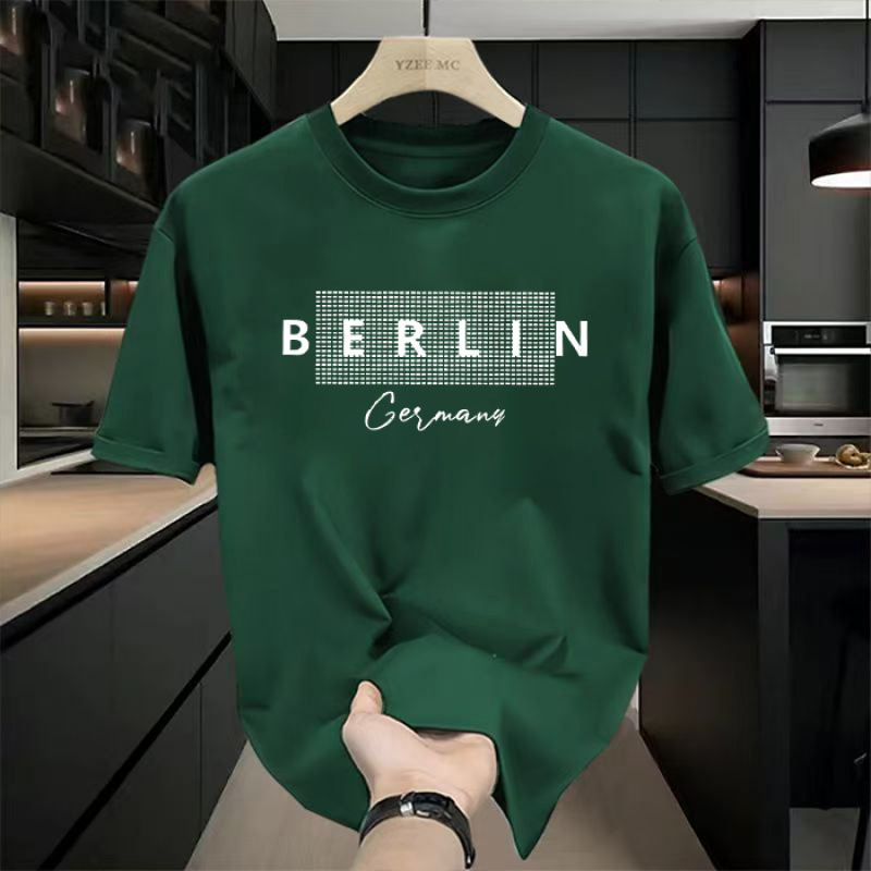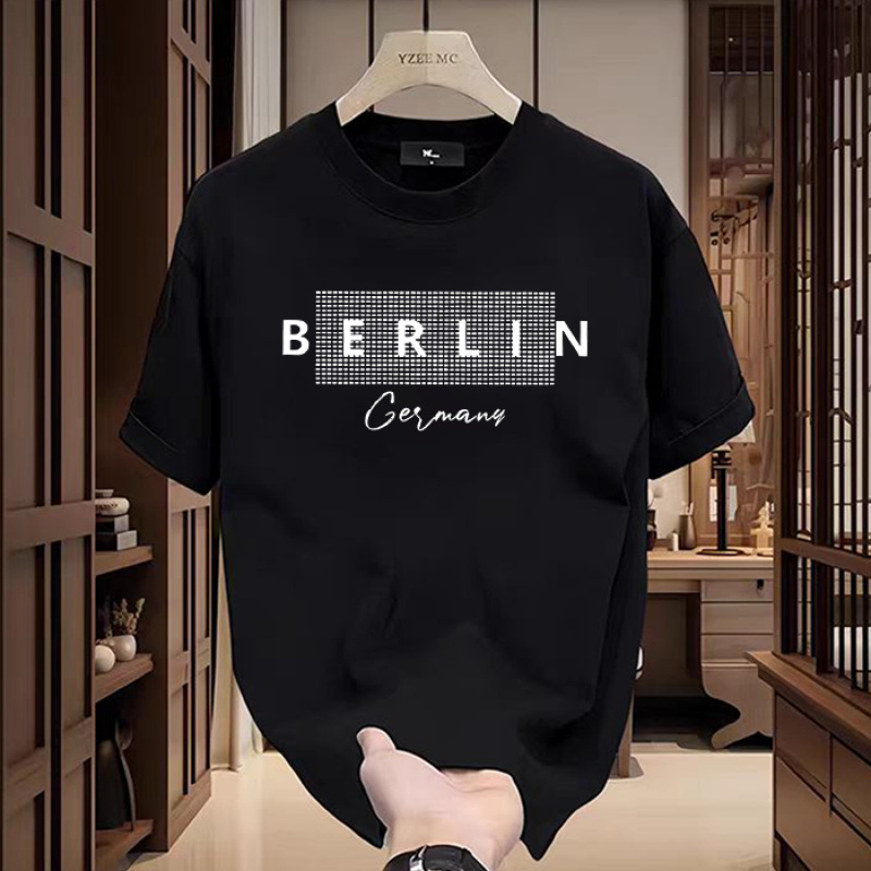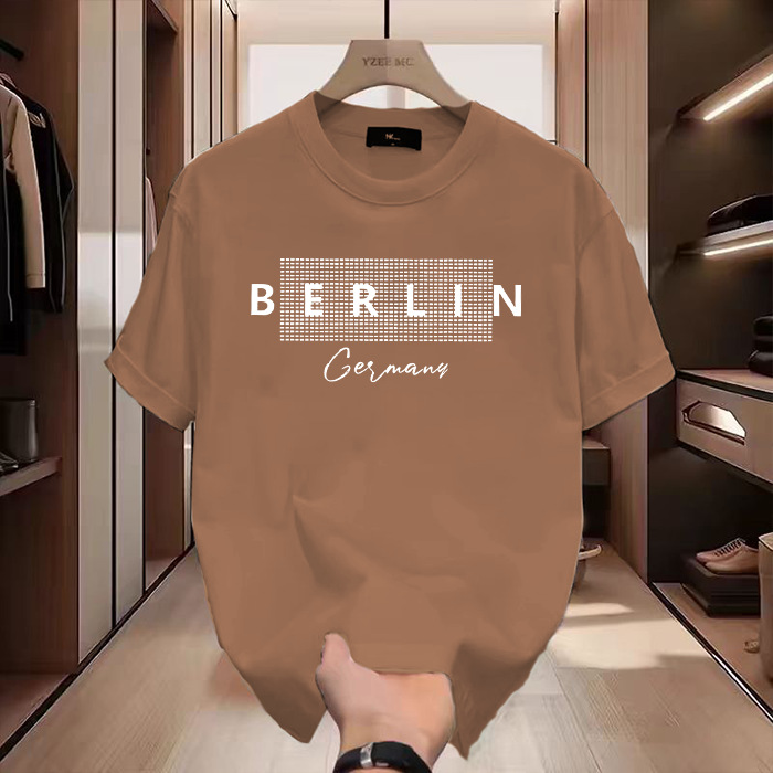 남성면 여름 남성과 여성의 반팔 티셔츠 2025 Crewneck 유행 새 편지 느슨한 인쇄 탑스토어 가기
