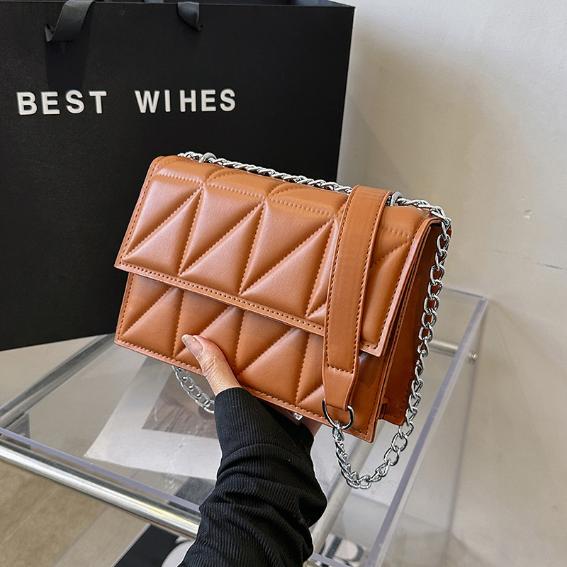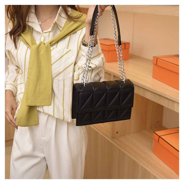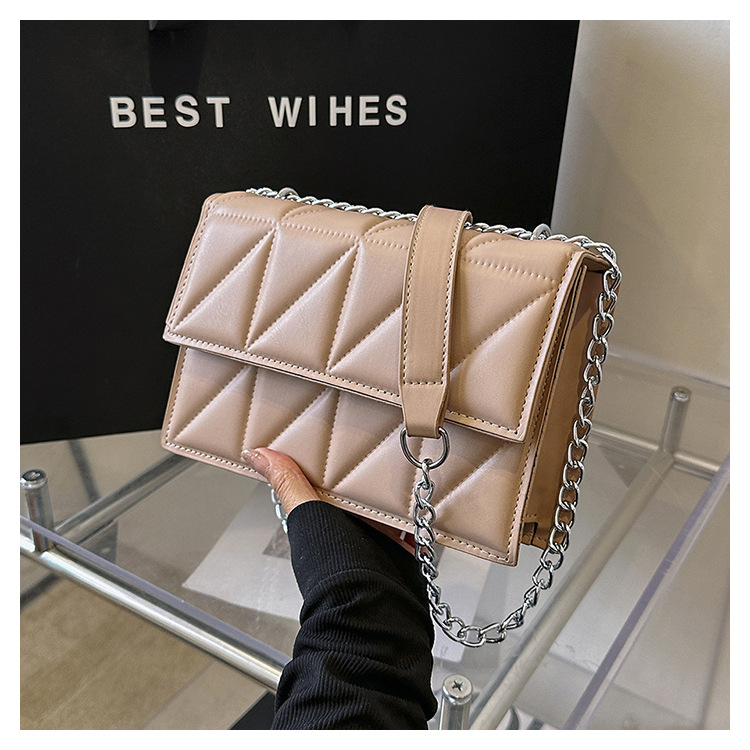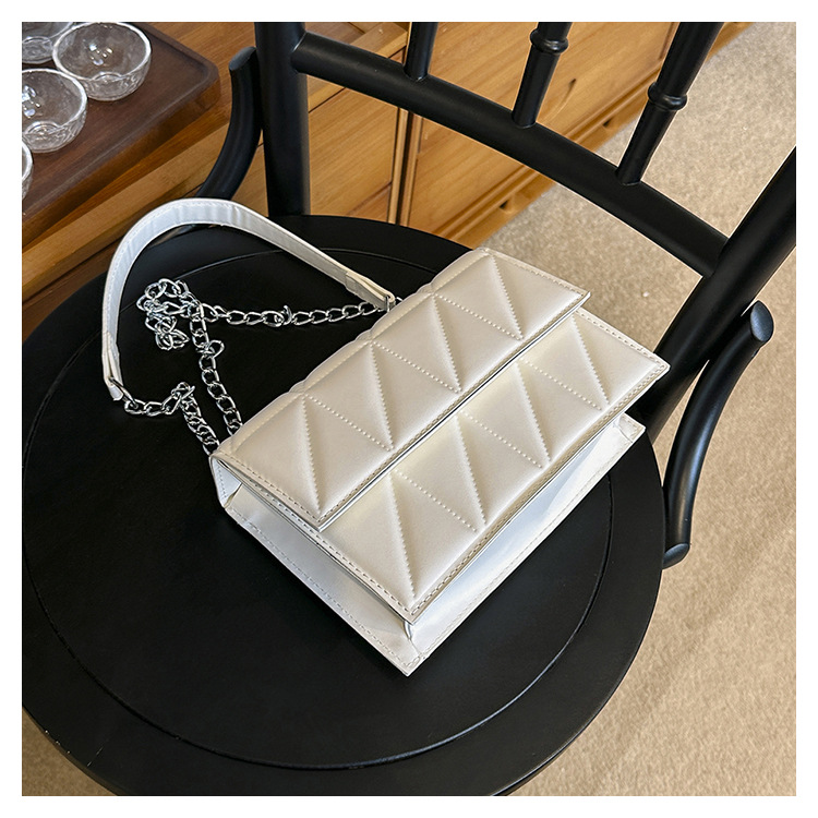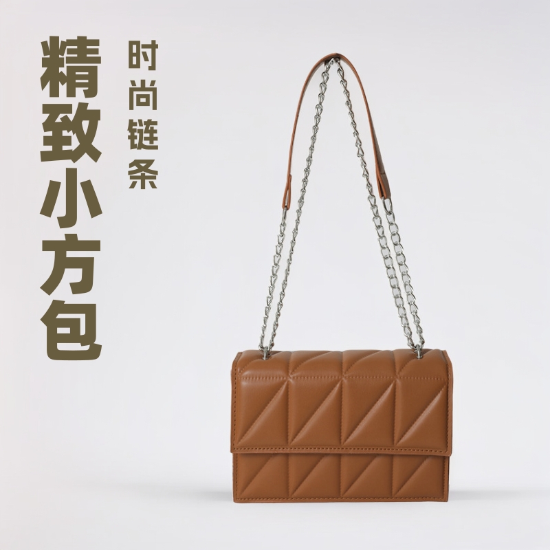 2025 봄 신상 작은 사각형 가방 한국 스타일 심플 패션 체인 가방 마름모 주름 숄더 크로스백스토어 가기