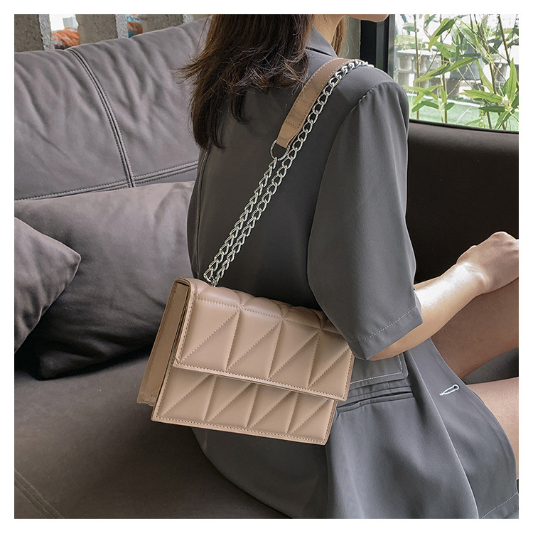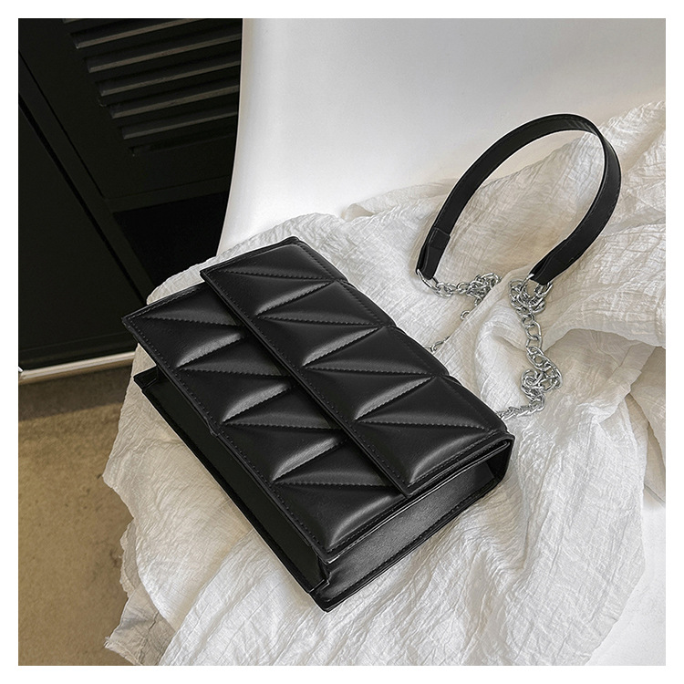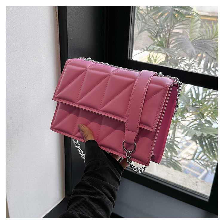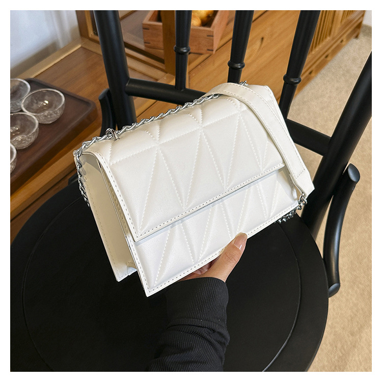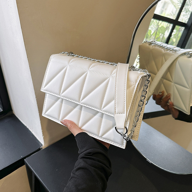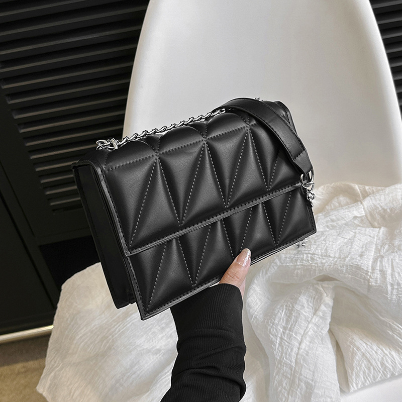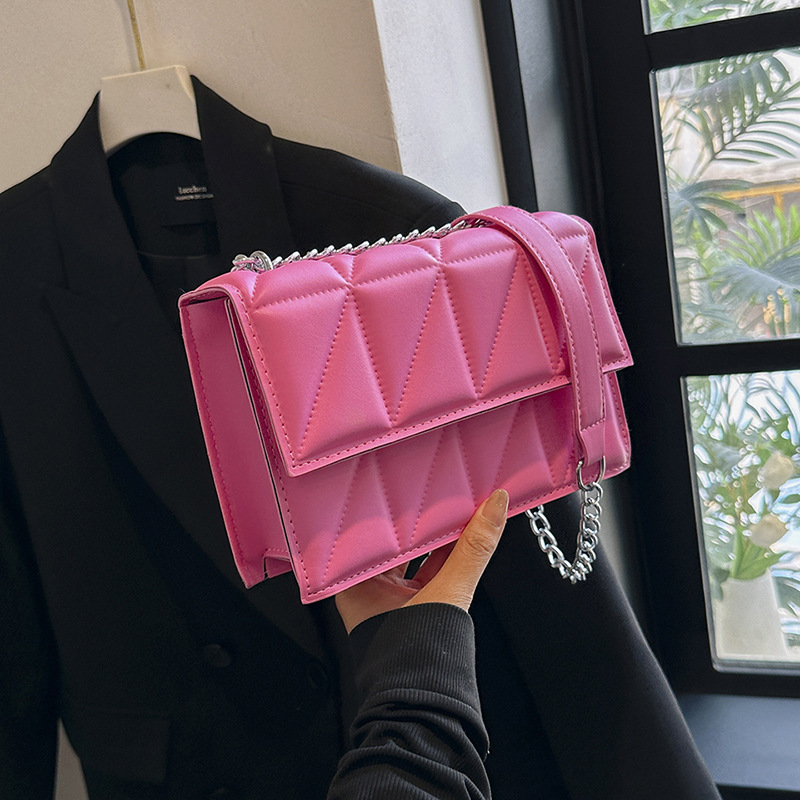 2025 봄 신상 작은 사각형 가방 한국 스타일 심플 패션 체인 가방 마름모 주름 숄더 크로스백