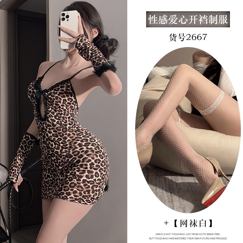 섹시한 란제리 열정 레오파드 무늬 슬링 힙합 스커트 유혹 남편 순수한 욕망 섹시한 잠옷 이륙 무료 세트