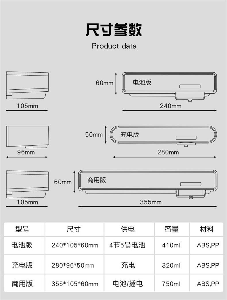 • 충전식 버전-거울 흰색-거품 스타일-320ml