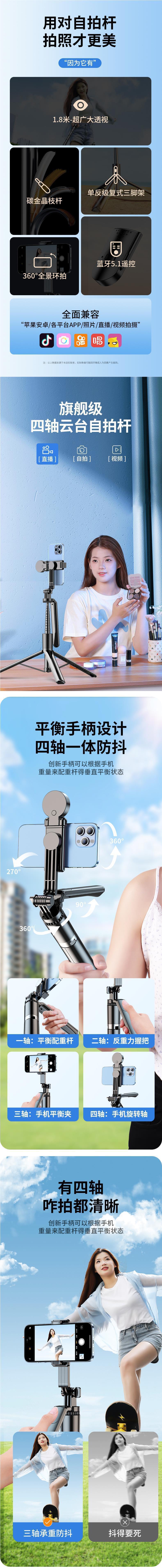 4 축 2024 새로운 셀카 스틱 셀카 360 도 회전 핸드 헬드 바닥 삼각대 휴대 전화 유니버설 안티 도매스토어 가기