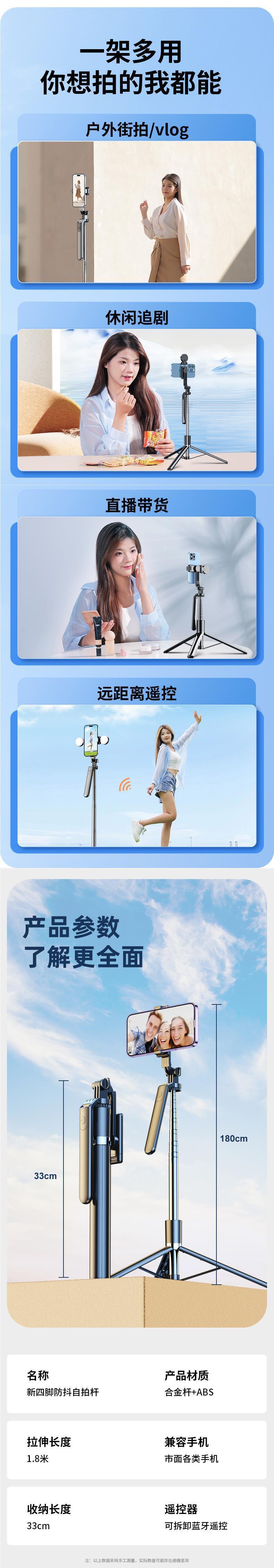 • 1.8m - 스노우 마운틴 화이트 [상위 버전] 4축 손떨림 방지◆브이로그 후속촬영◆탄소강 샤프트◆블루투스 원격 제어