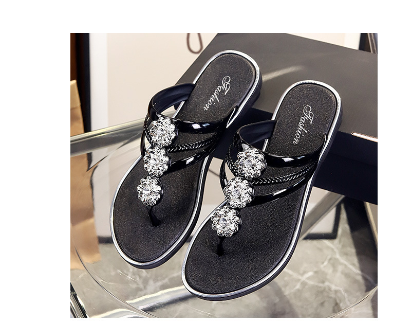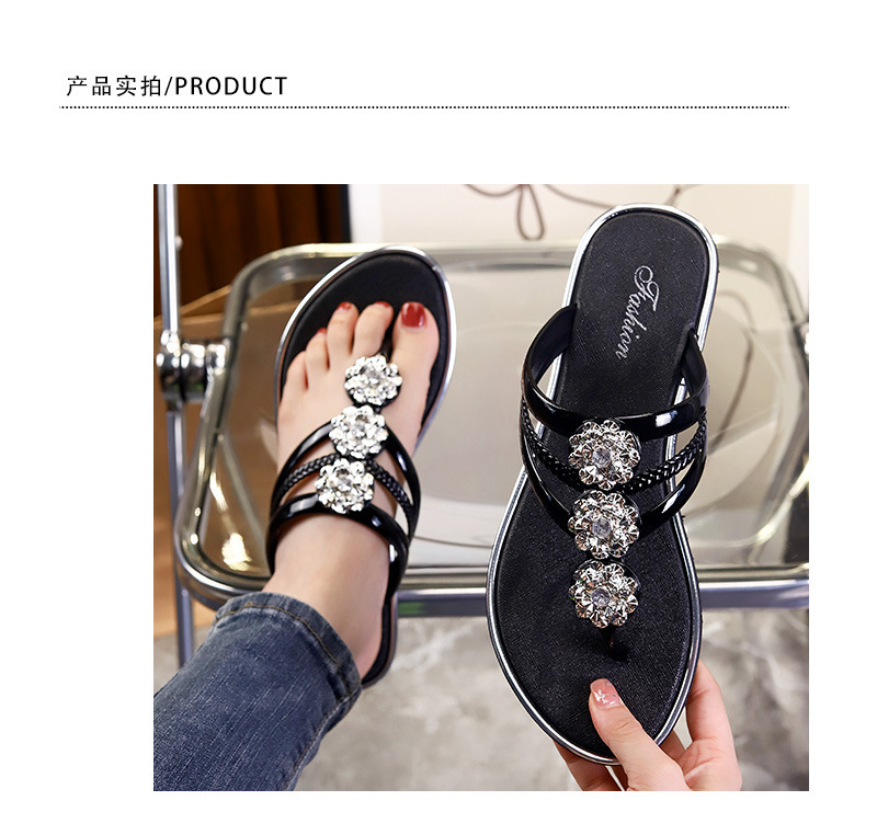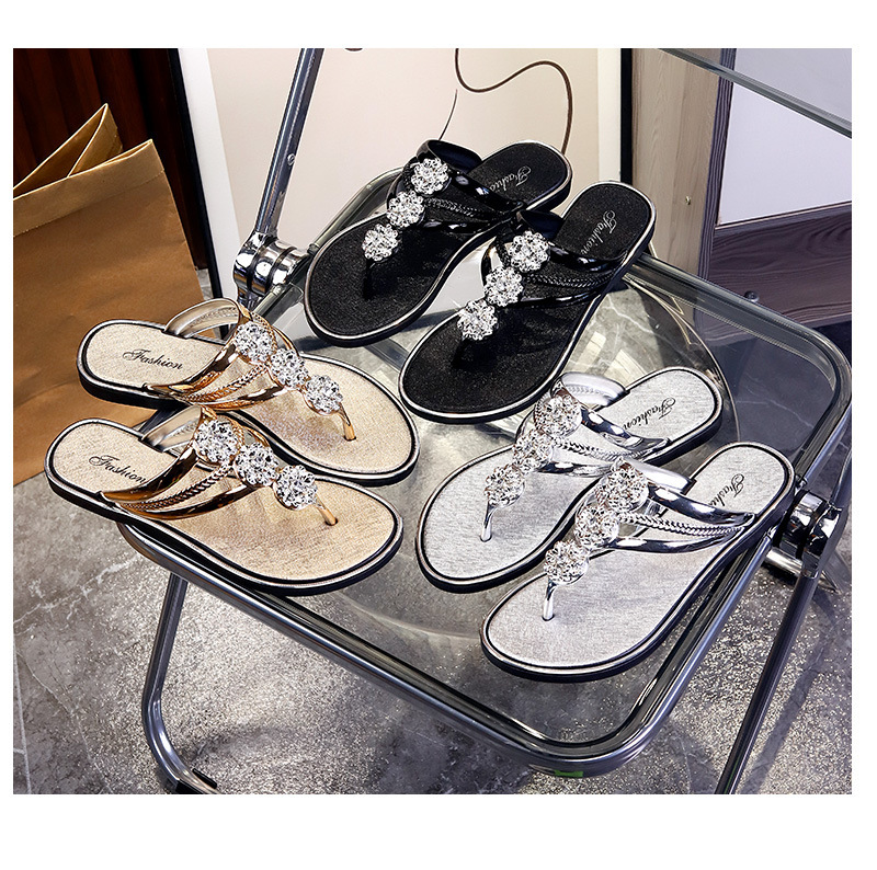 플립 플롭 여성 여름 최신 야외 착용 하이 엔드 모조 다이아몬드 패션 다목적 클립-플랫 슬리퍼 비치 샌들