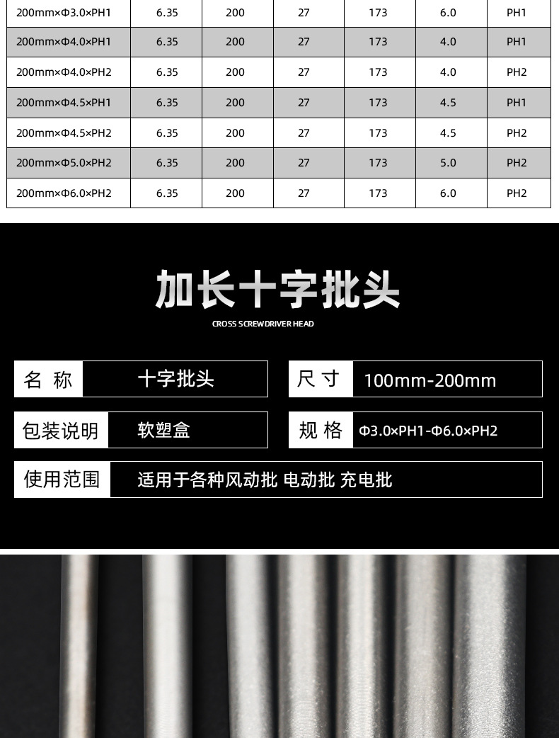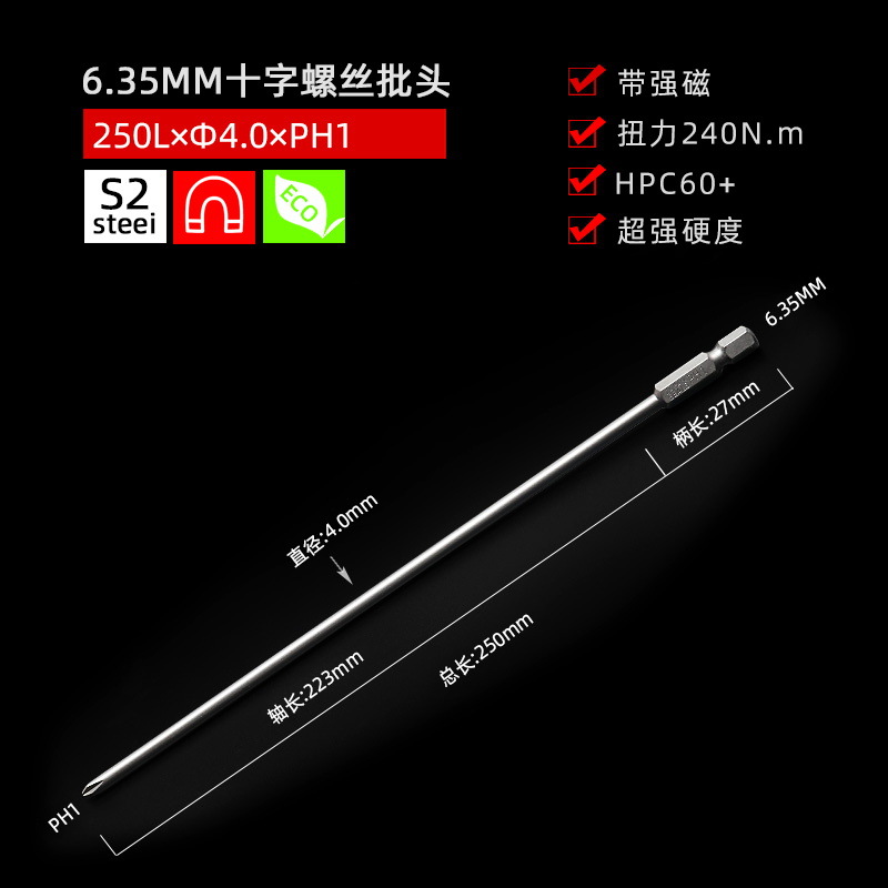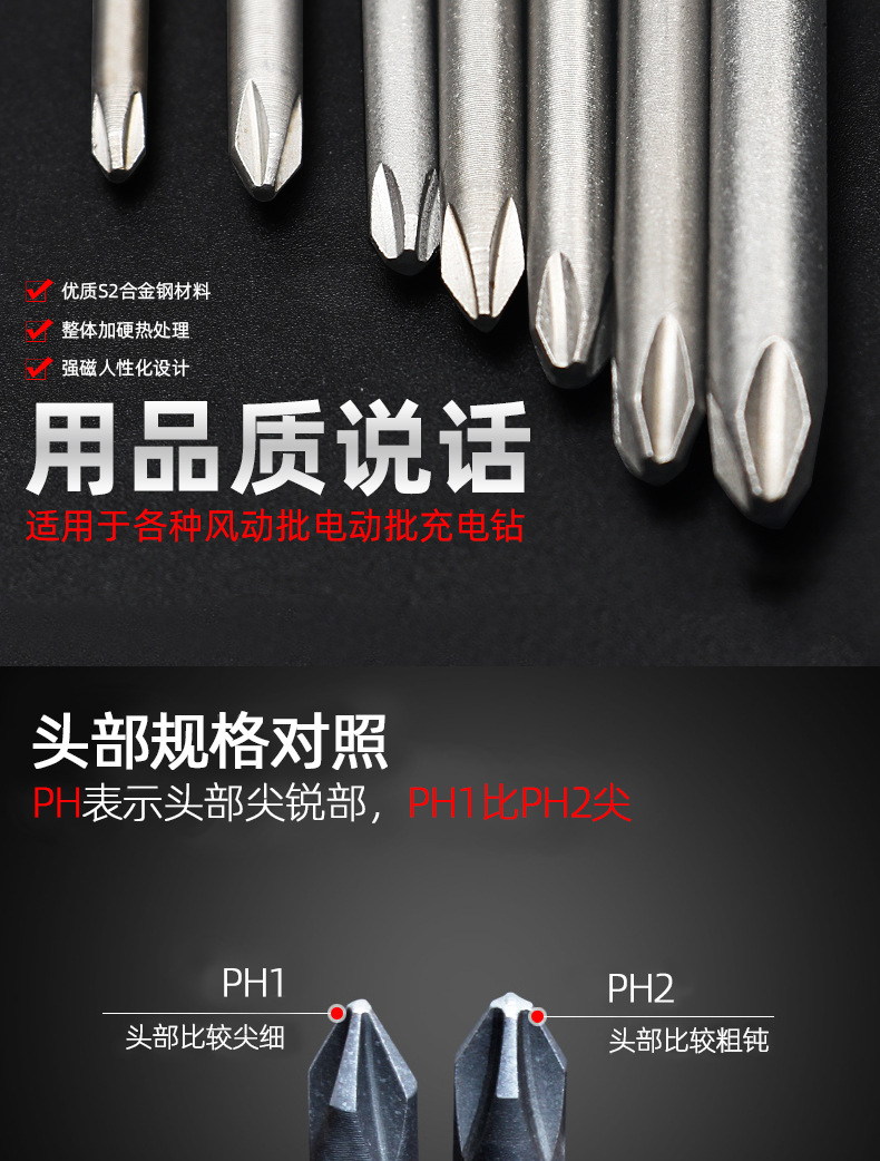 M & M & Lengthen 전기 스크류 드라이버 헤드 6.35 합금 크로스 공압 바람 헤드 세트 Lengthen 1/4 배치 헤드