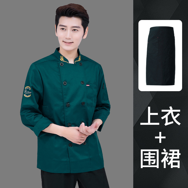 • 밀 짙은 녹색 긴 소매 + 검은 반 앞치마