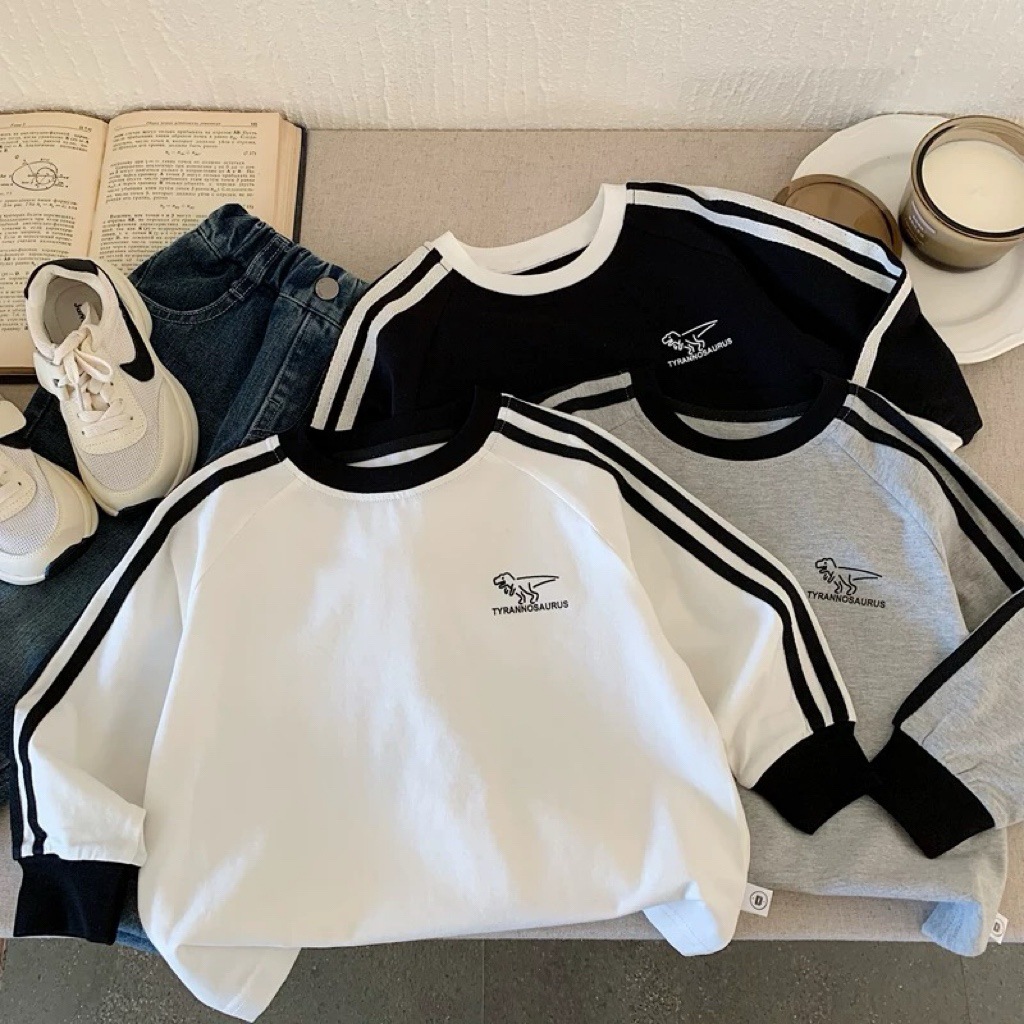 남학생 긴팔 티셔츠 어린이 순면 봄베이스 셔츠 봄 2025 새로운 어린이 아기 공룡 탑 트렌디 티셔츠스토어 가기