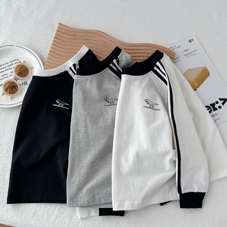 남학생 긴팔 티셔츠 어린이 순면 봄베이스 셔츠 봄 2025 새로운 어린이 아기 공룡 탑 트렌디 티셔츠