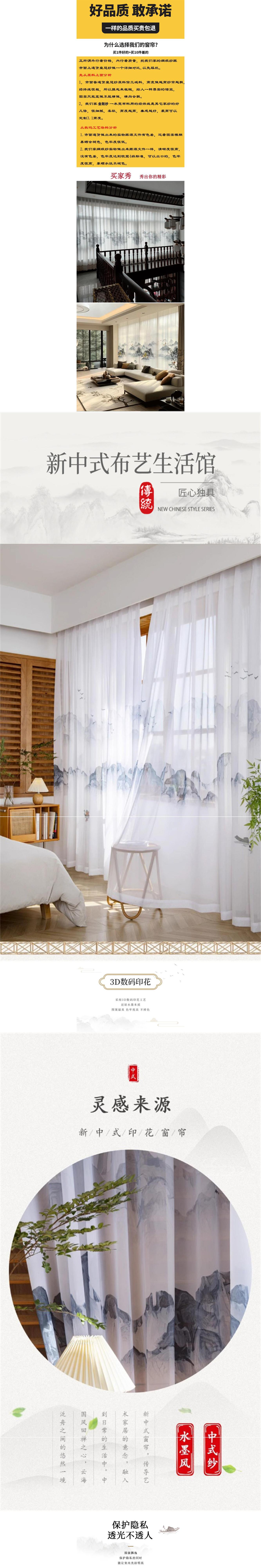 2025 새로운 중국 스타일 커튼 젠 티 룸 거실 중국 스타일 클래식 잉크 풍경 페인팅 투명 불투명 거즈 커튼스토어 가기