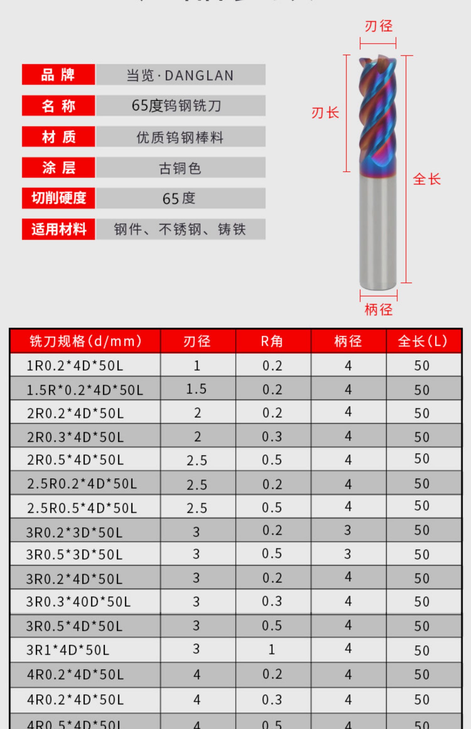 • 블레이드 직경*R 각도*블레이드 길이*생크 직경*전체 길이