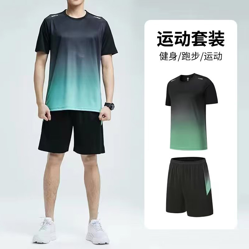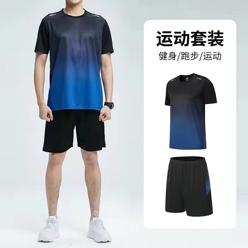 국경 간 반팔 스포츠 아이스 실크 세트 여름 새로운 그라디언트 타이 염료 달리기 피트니스 얇은 반바지 투피스 도매스토어 가기