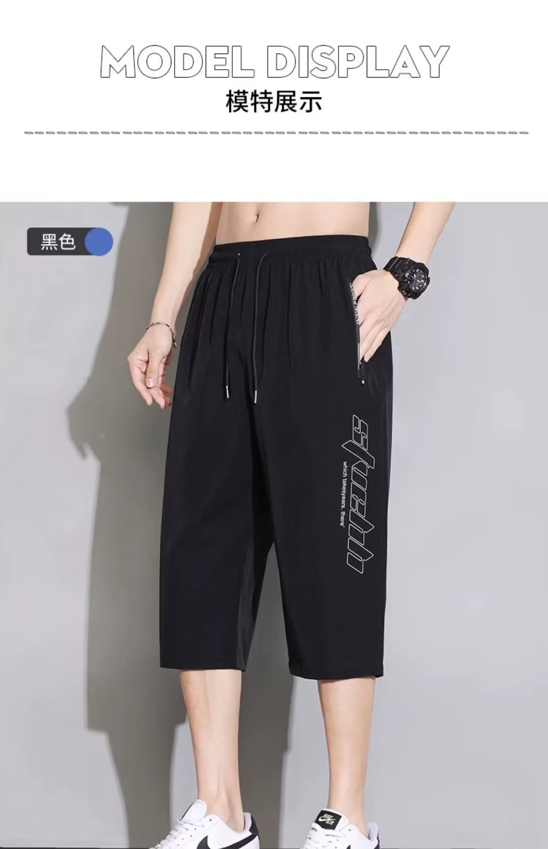 아이스 실크 카프리 바지 남자 여름 얇은 트렌디 브랜드 느슨한 빠른 건조 무릎 길이 바지 남자 스포츠 캐주얼 반바지스토어 가기