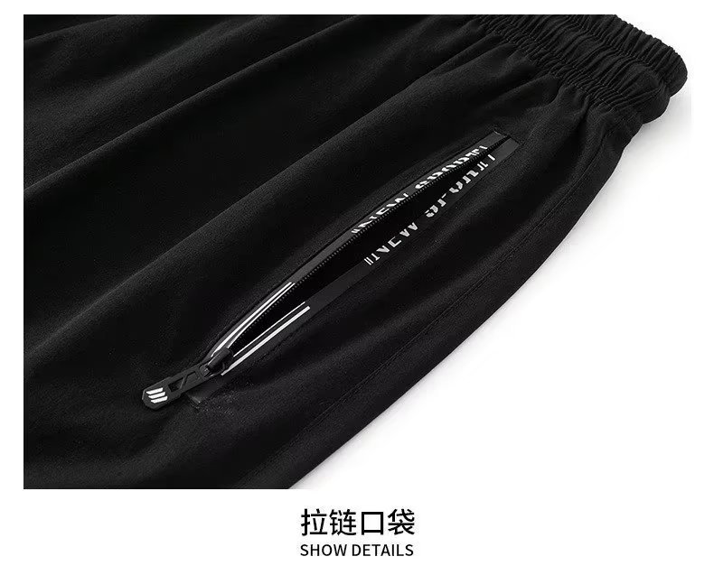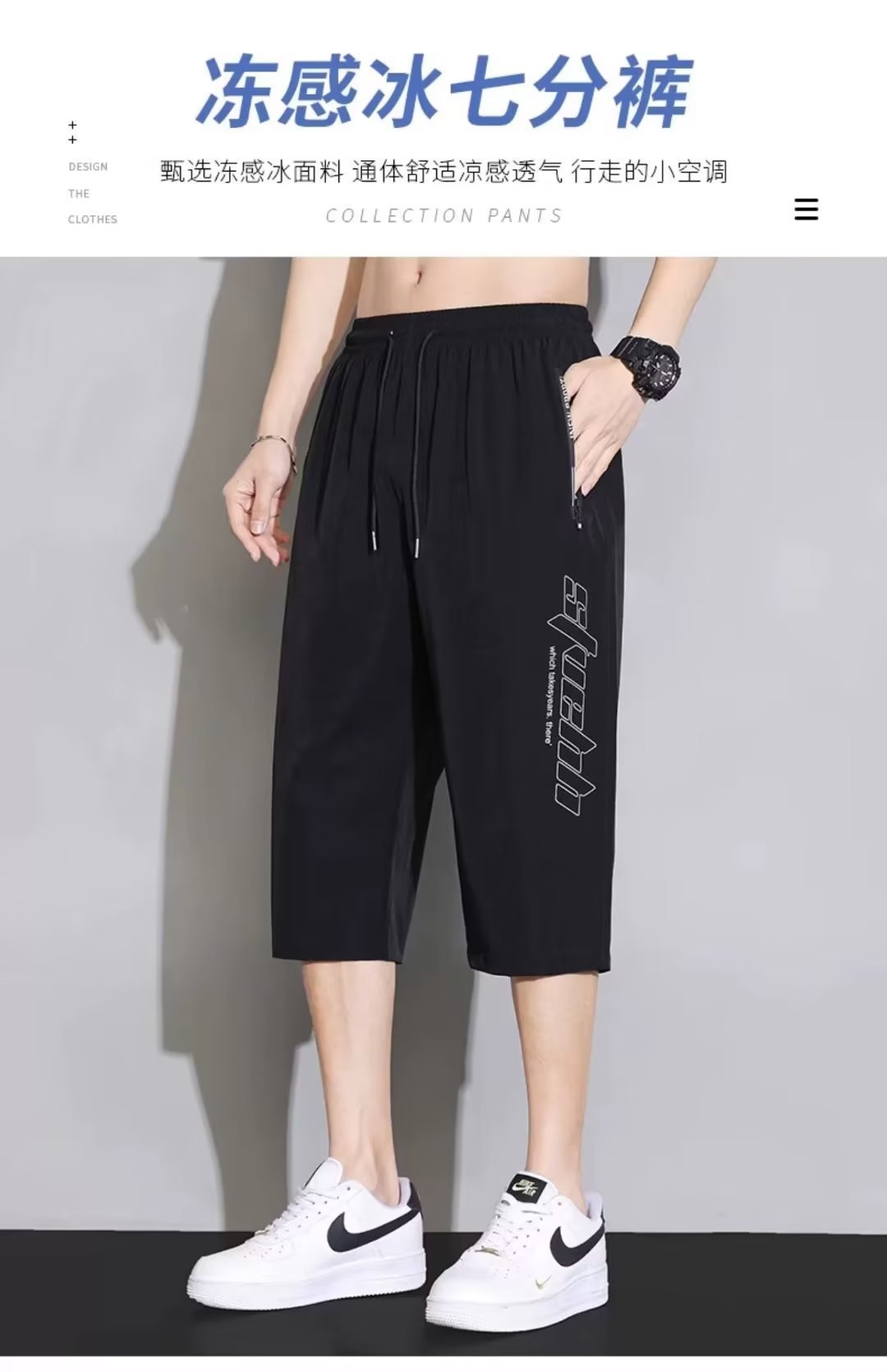 아이스 실크 카프리 바지 남자 여름 얇은 트렌디 브랜드 느슨한 빠른 건조 무릎 길이 바지 남자 스포츠 캐주얼 반바지
