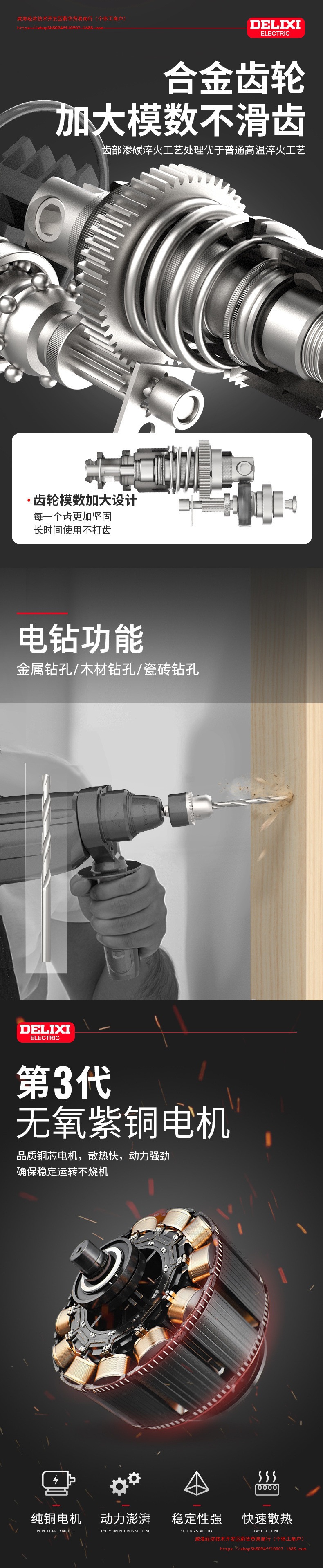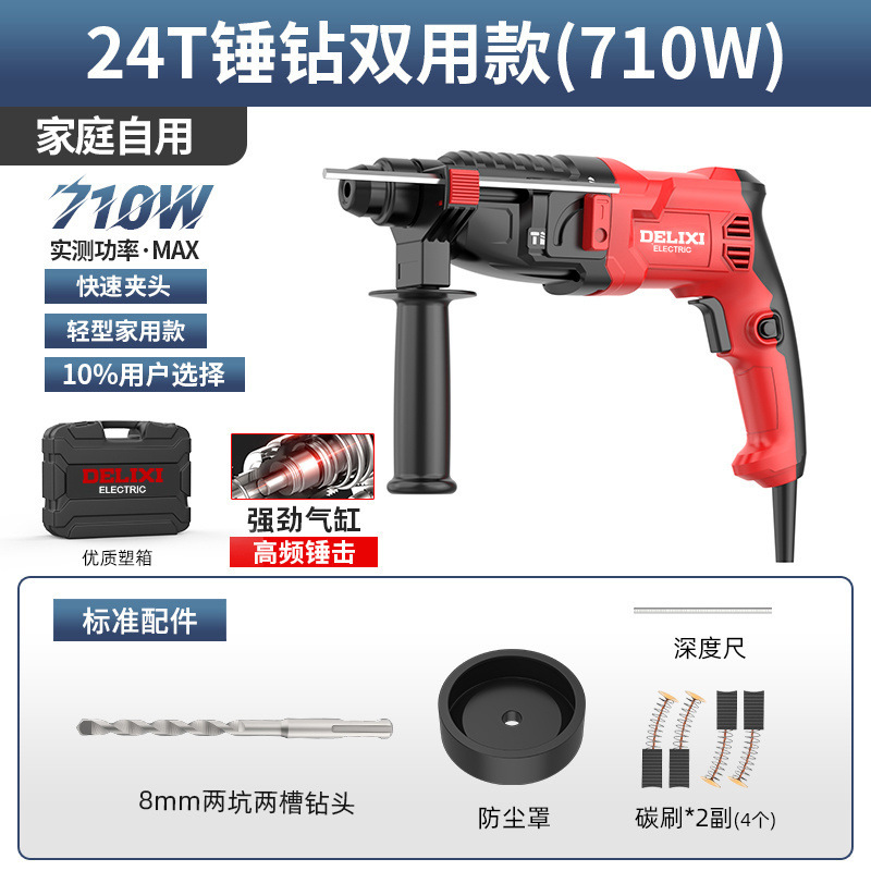 Delixi 전기 해머 전기 픽 전기 드릴 3 조명 다기능 고성능 충격 드릴 가정용 산업용 콘크리트스토어 가기