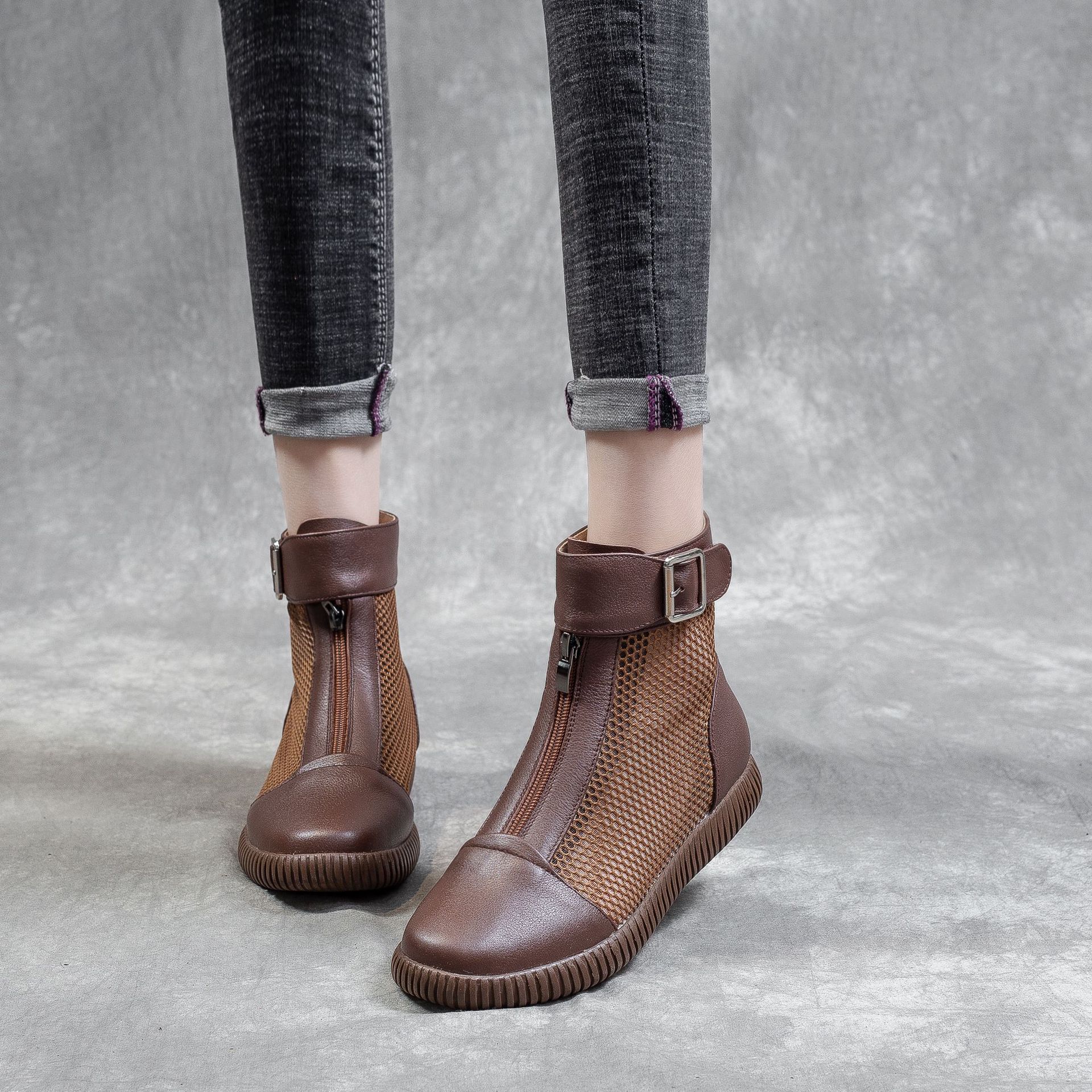 메쉬 할로우 저층 Cowhide Martin 부츠 여성 여름 새로운 영국 스타일의 캐주얼 통기성 메쉬 부츠스토어 가기