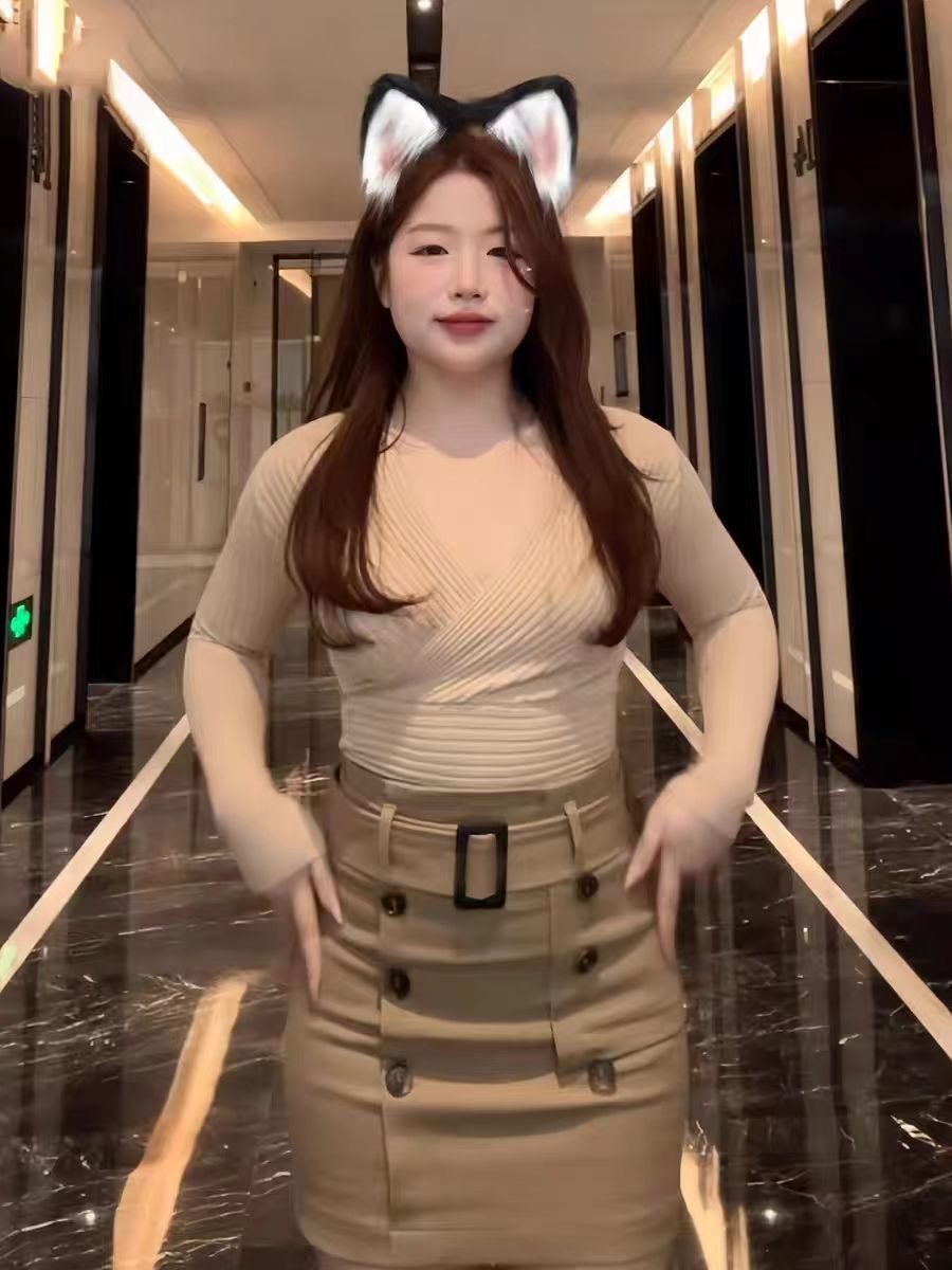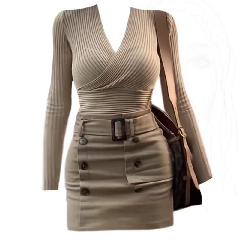 플러스 사이즈 통통녀 순수한 섹시한 V 넥 스웨터 최고 여성 봄 2025 새로운 허리 슬리밍 엉덩이 치마 세트스토어 가기