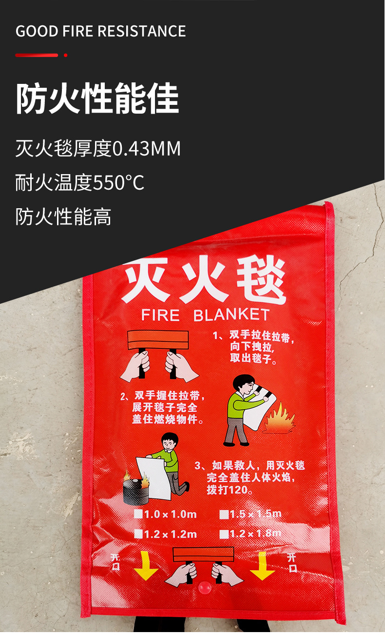 M & Fire Blanket 1 m * m 탈출 화재 담요 주방 가정용 호텔 화재 담요 유리섬유 구명 담요 비상