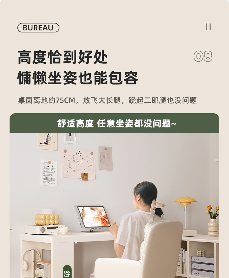 • [원목 생태보드] 수납공간이 있는 싱글테이블 웜화이트 120cm [두께 26mm 자유조합]