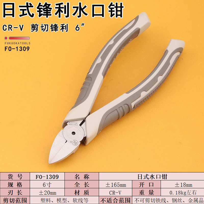 후쿠오카 도구 6 인치 물 입 펜치 얇은 블레이드 비스듬한 코 펜치 플라스틱 모델 절단 펜치 전자 절단 펜치 FO-1309