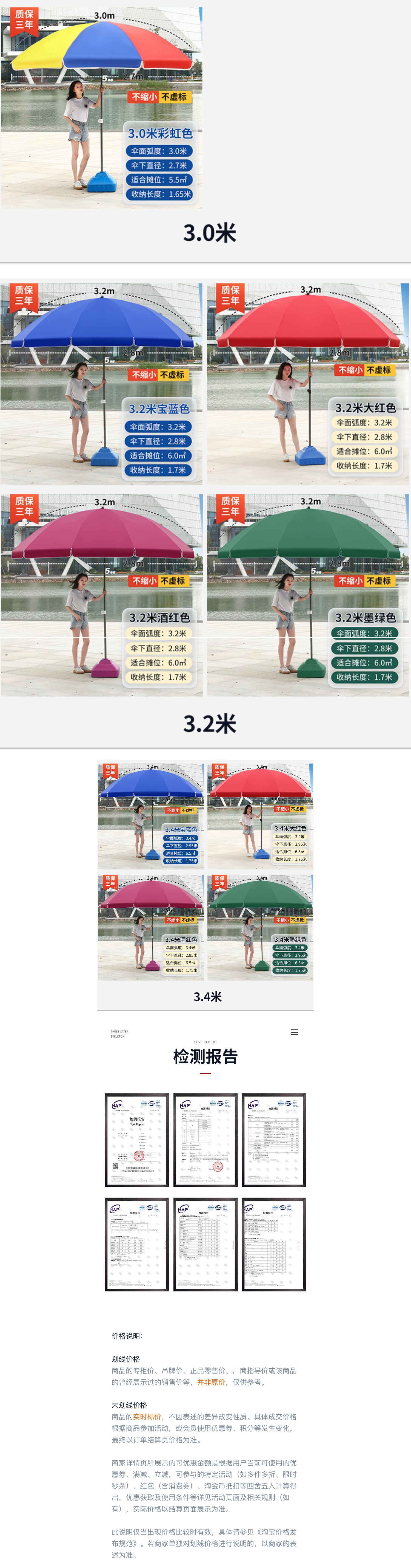 • 다홍 3.0m [이중 은색 플라스틱 우산 표면] + 두꺼운 우산 기둥