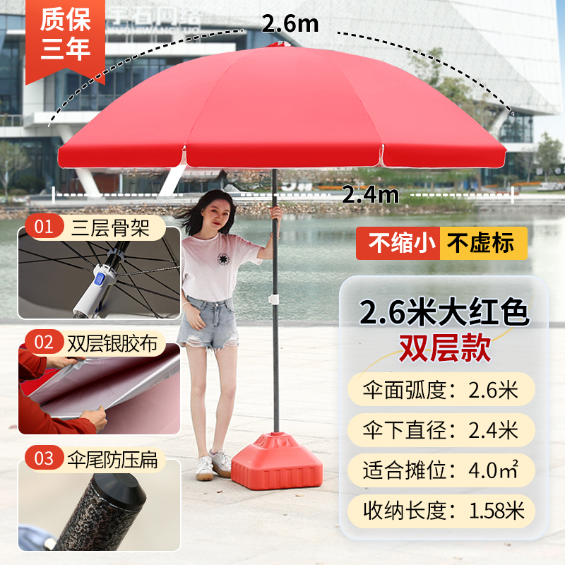 • 다홍 2.6m [이중 은색 플라스틱 우산 표면] + 두꺼운 우산 기둥