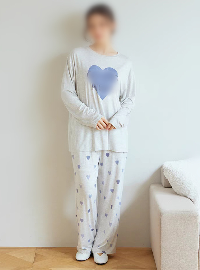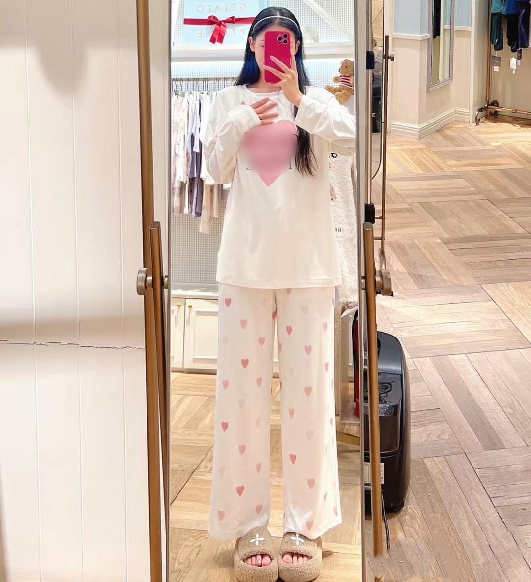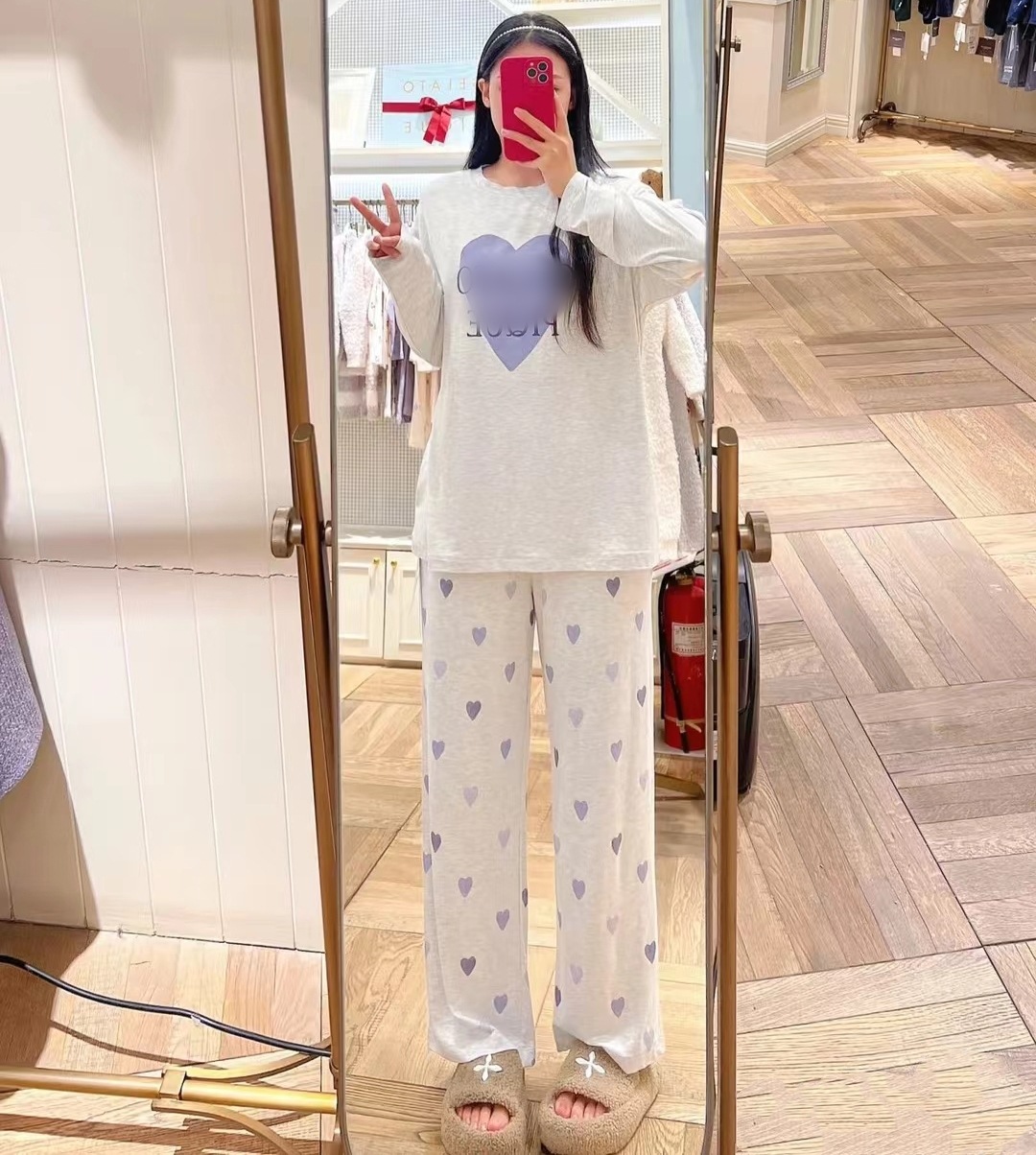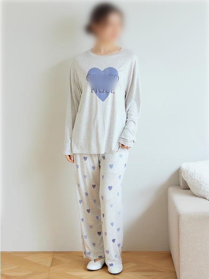 gp 오리지널 부드러운 아이스크림 하트 프린트 라운드넥 긴팔 긴바지 여성 세트 잠옷 홈웨어스토어 가기