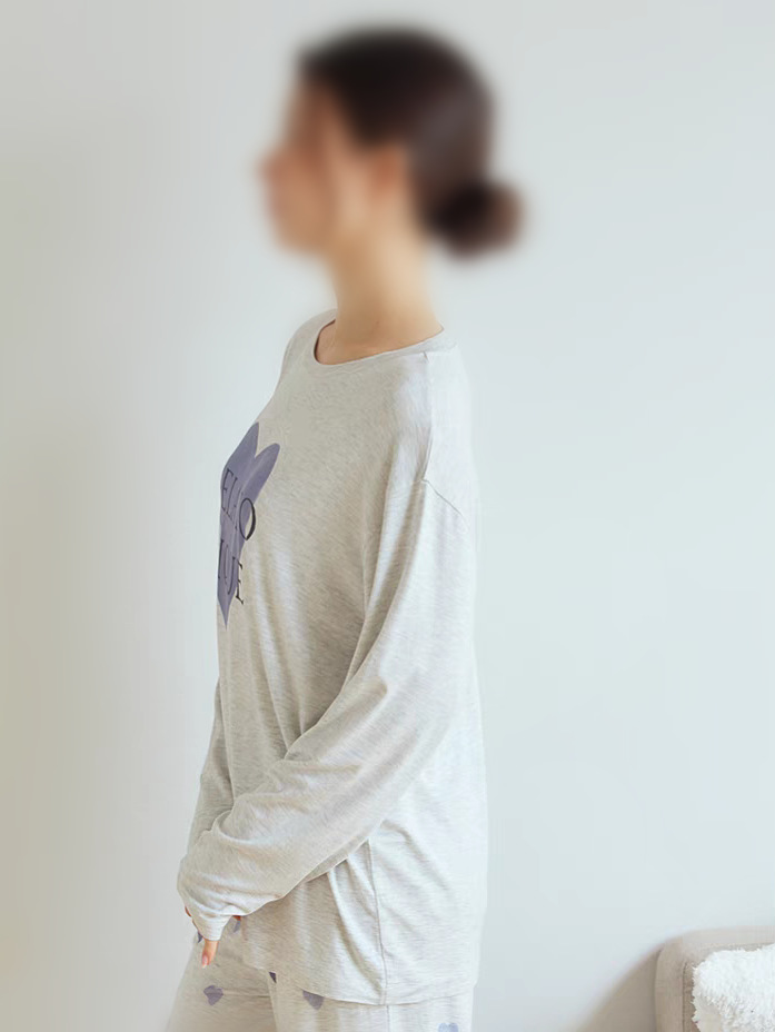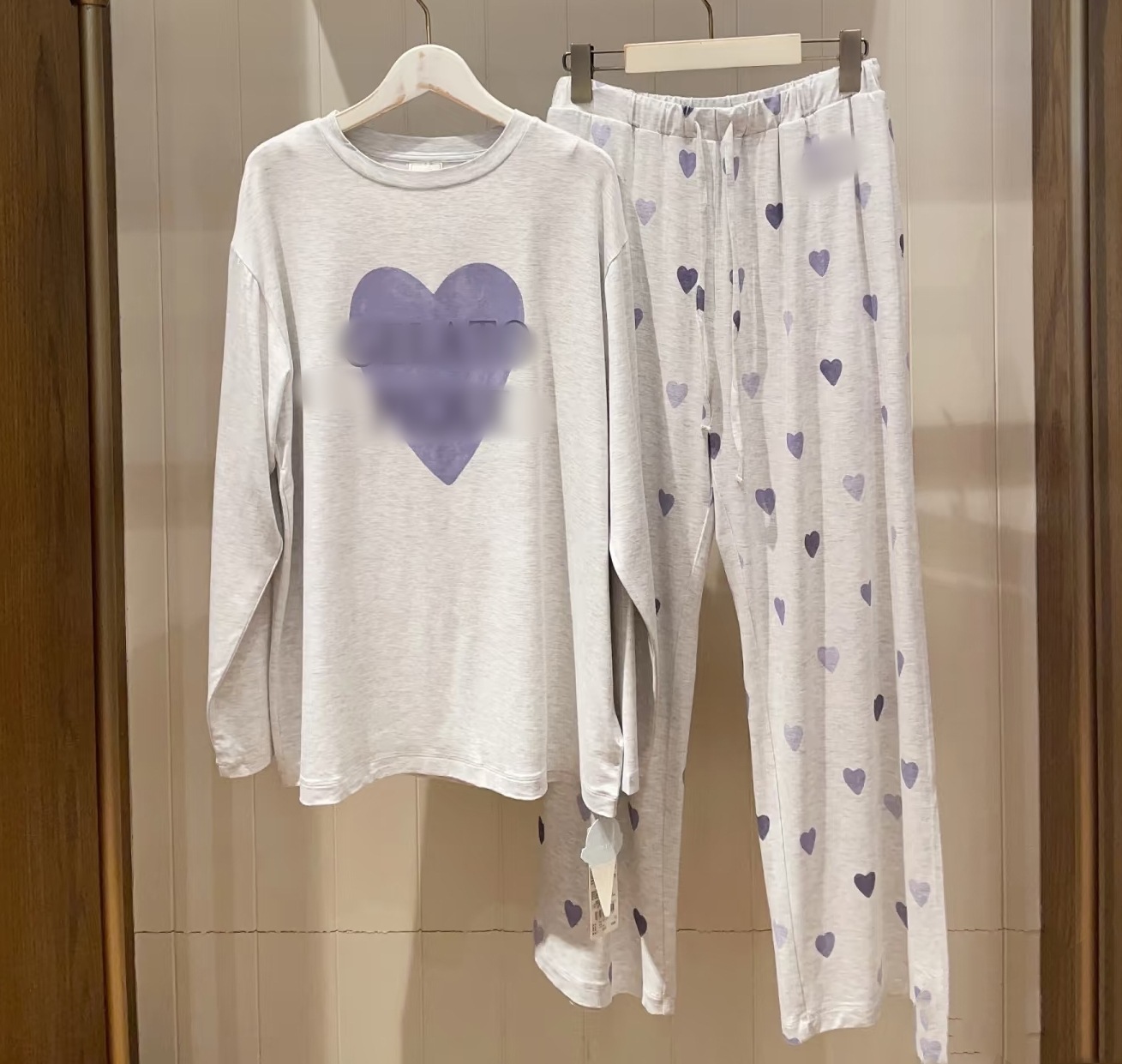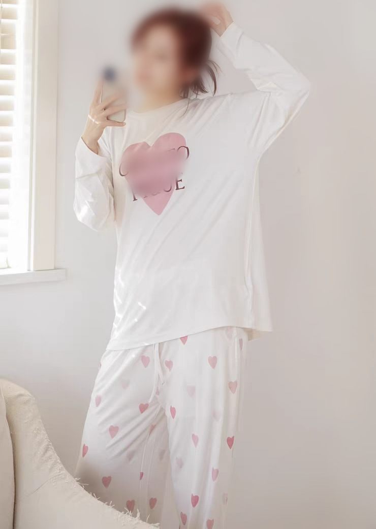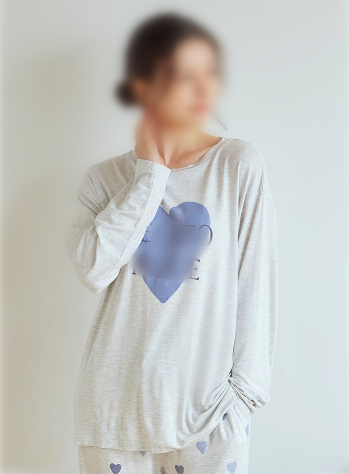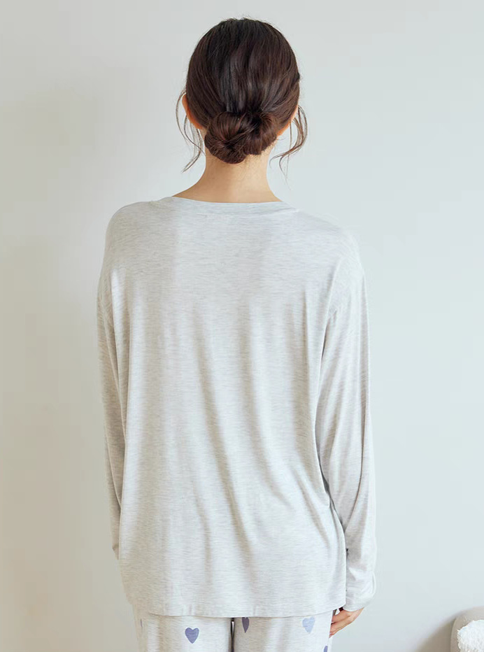 gp 오리지널 부드러운 아이스크림 하트 프린트 라운드넥 긴팔 긴바지 여성 세트 잠옷 홈웨어스토어 가기