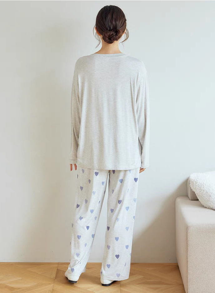 gp 오리지널 부드러운 아이스크림 하트 프린트 라운드넥 긴팔 긴바지 여성 세트 잠옷 홈웨어