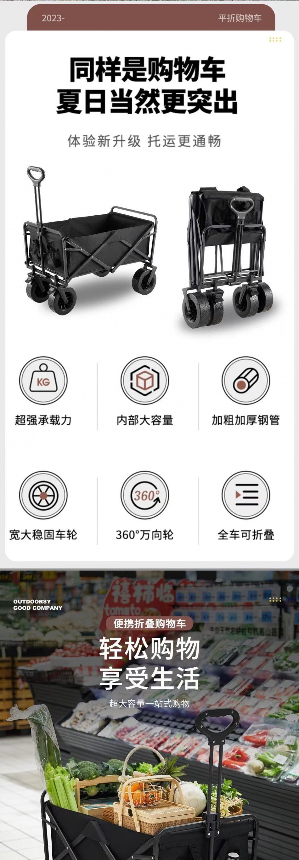 • 후면 개방형 - [블랙] 8inch 오프로드 유니버설 휠/더블 브레이크 접이식 야외 캠핑카 + 테이블 [접이식]]